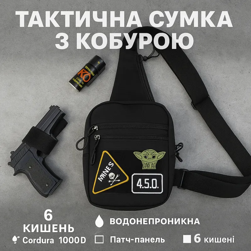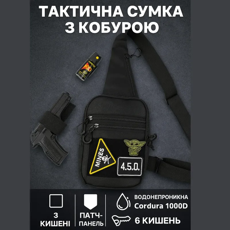 Тактическая мужская сумка с кобурой Cordura 1000D – 6 карманов, черный