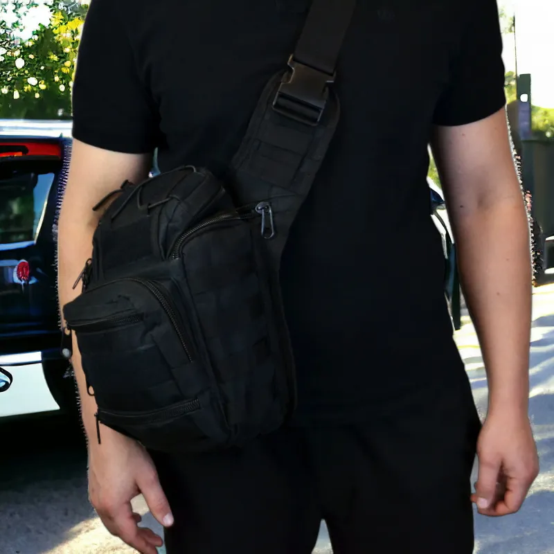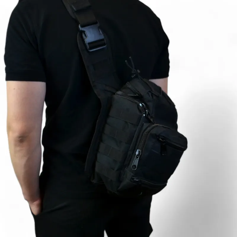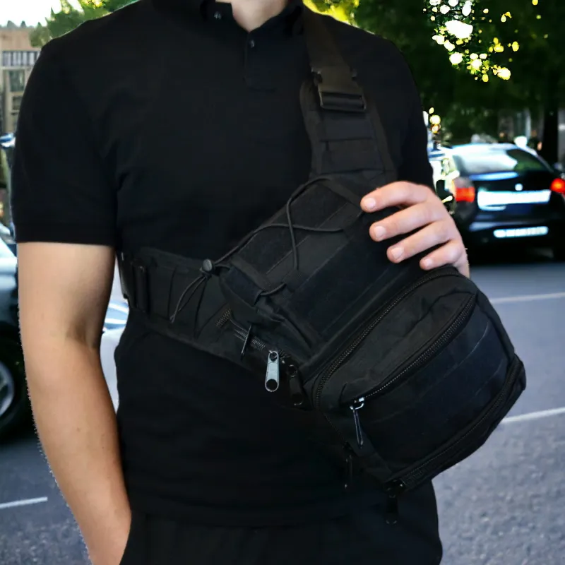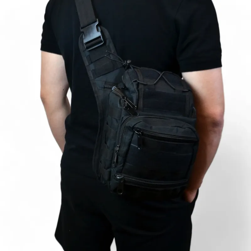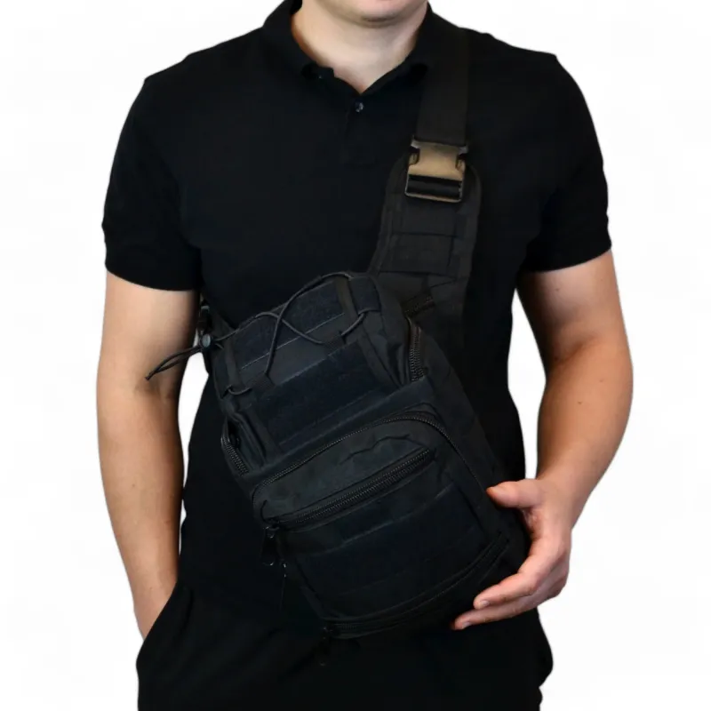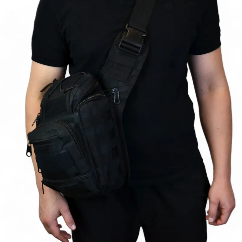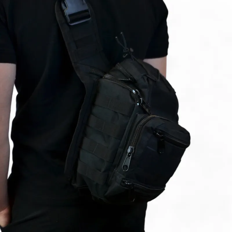 Тактическая сумка черная через плечо военная большая нагрудная сумка ВСУ сумка универсальная армейская