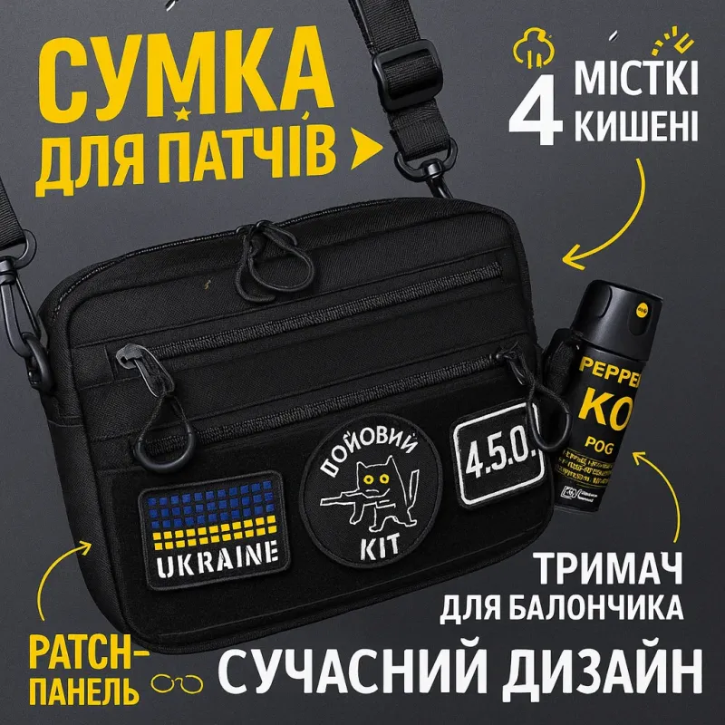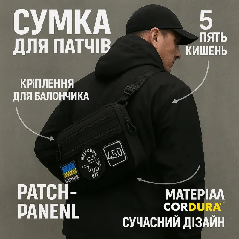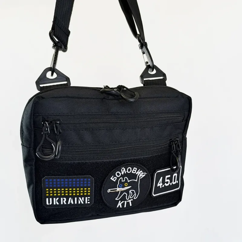 Тактическая сумка для патчей Cordura 600D — 5 карманов, мессенджер черный из ткани