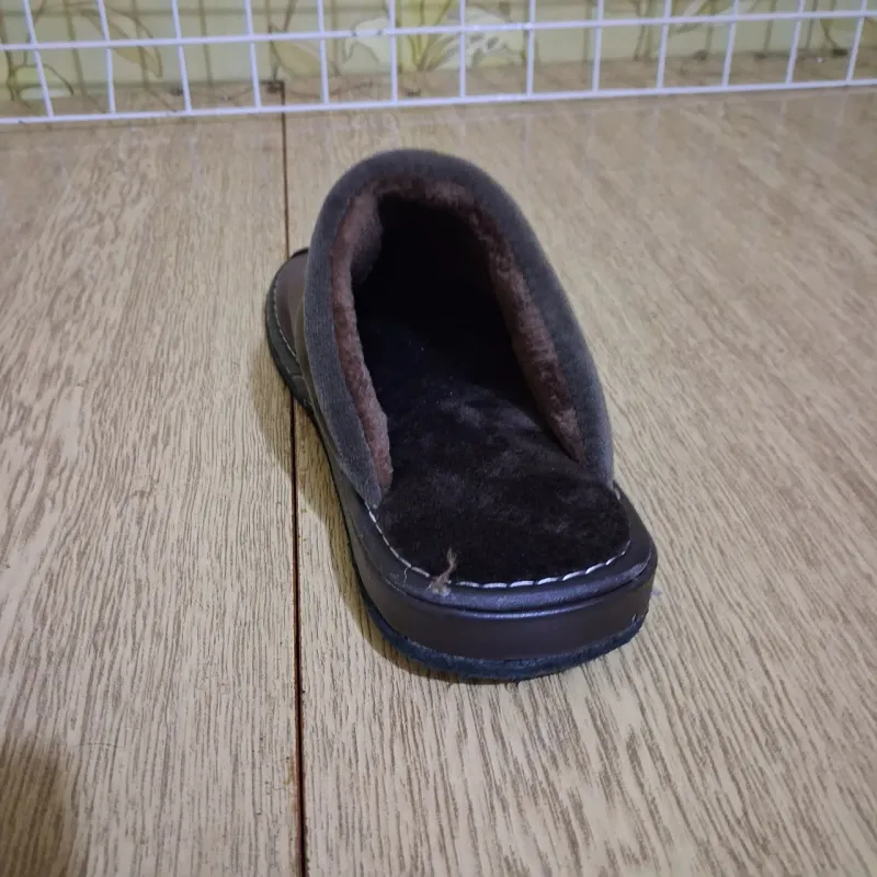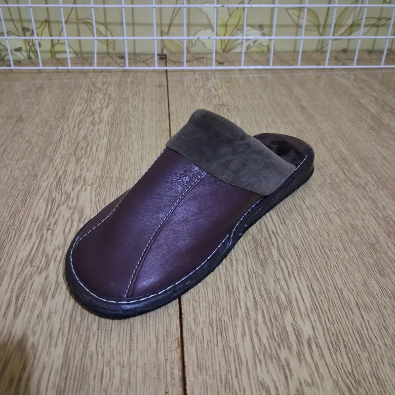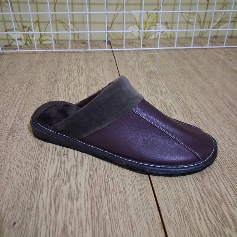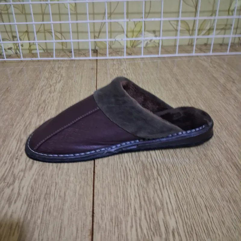 Зручні та теплі чоловічі тапочки для дому. Класична закрита модель у темно-коричневому кольорі. Верх виконаний з якісної штучної шкіри, яка легко протирається та довго зберігає вигляд. Всередині тапочки утеплені м'яким густим хутром, що забезпечує тепло та комфорт у холодну пору року. Особливості: Тепло: Густе хутро всередині відмінно зігріває ноги. Якість: Підошва надійно прошита по контуру міцною ниткою. Практичність: Верх з еко-шкіри легко чиститься. Підошва: Стійка, не ковзає по плитці чи ламінату. Характеристики: Матеріал верху: Штучна шкіра Матеріал підкладки: Штучне хутро Колір: Темно-коричневий Розміри: 41-45 Тип: Закритий носок