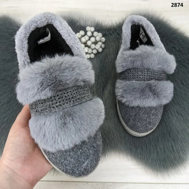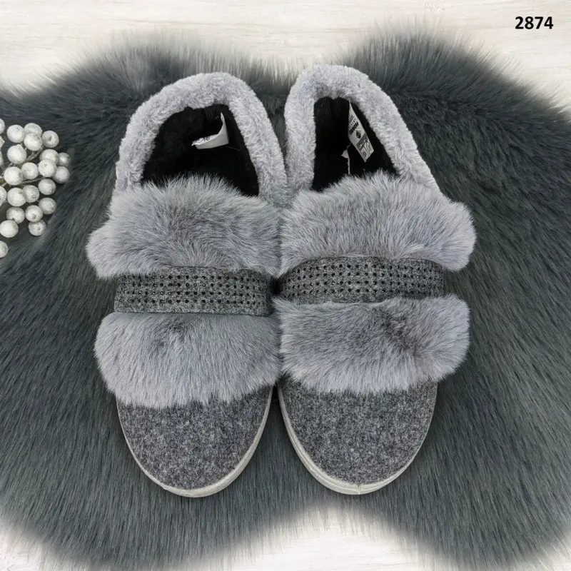 Тапочки чуні жіночі теплі сірі з хутряним опушенням Progress