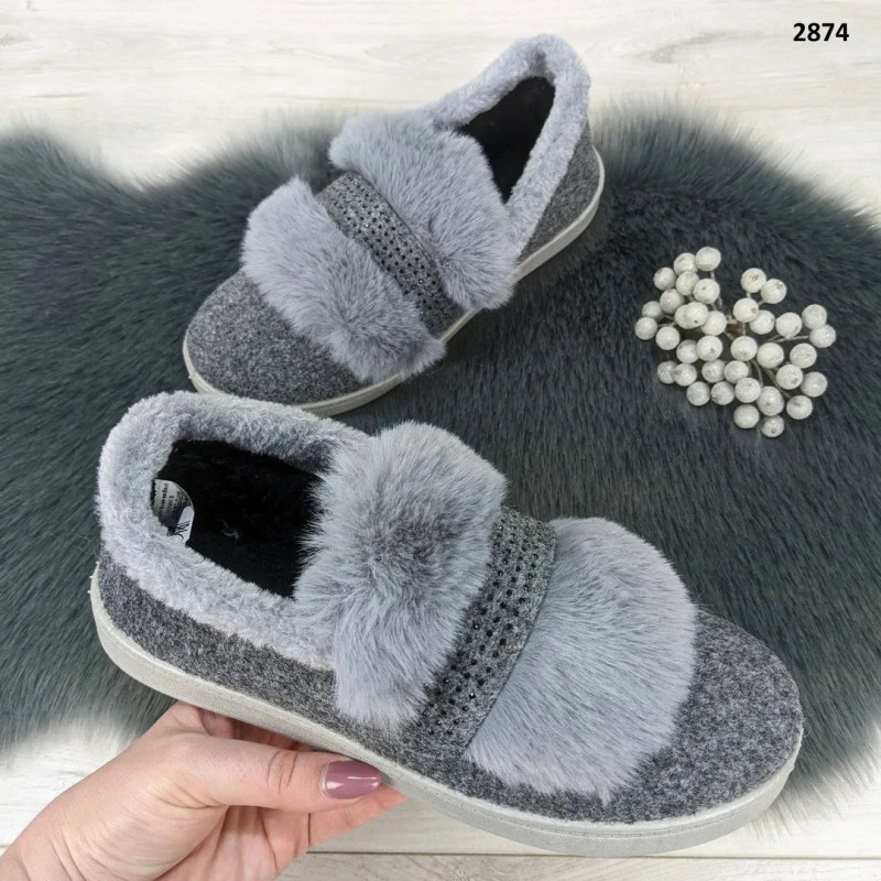Тапочки чуні жіночі теплі сірі з хутряним опушенням Progress