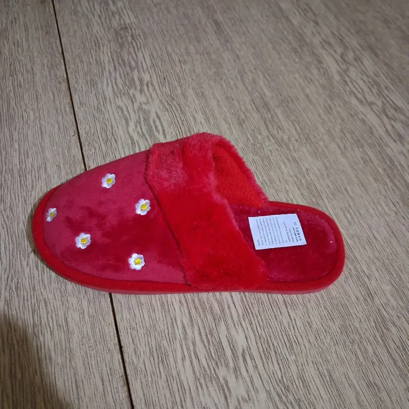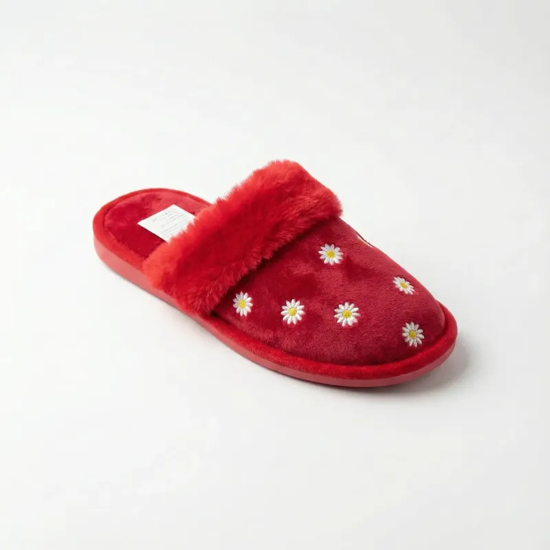 Ці червоні тапочки з ромашками створені для тих, хто цінує домашній комфорт. М'який пухнастий матеріал огортає стопу, зберігаючи тепло навіть у найхолодніші дні. Універсальні розміри 36-41 підійдуть більшості жінок.