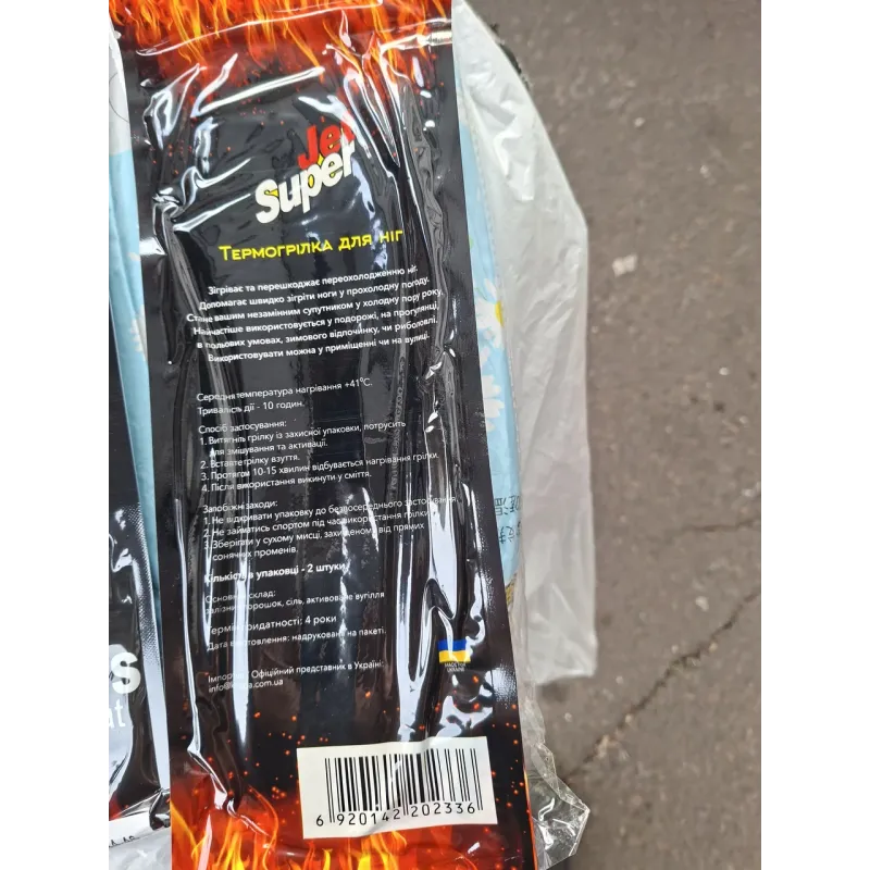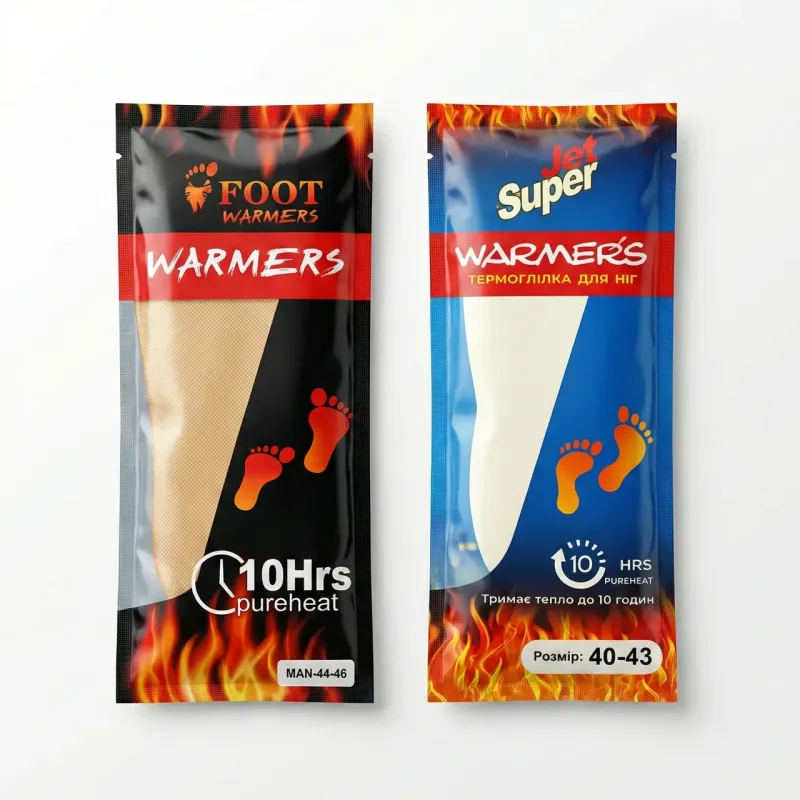 Забудьте про замерзлі пальці ніг взимку з одноразовими хімічними грілками-устілками Jet Super. Це простий, але ефективний засіб, який генерує "живе" тепло протягом 10 годин. Ідеальне рішення для військовослужбовців ЗСУ, любителів зимової риболовлі, полювання, працівників вуличних торгівлі або просто для довгих прогулянок у морозну погоду. Грілки активуються при контакті з повітрям. Вам достатньо просто відкрити упаковку, почекати 10-15 хвилин для активації хімічної реакції та вкласти устілки у взуття. Середня температура нагріву становить комфортні +41°C, що дозволяє тримати ноги в теплі, не допускаючи переохолодження чи перегріву. Устілки тонкі та зручні, розроблені під розмір взуття 40-43. Завдяки натуральним компонентам (залізний порошок, активоване вугілля, сіль), вони безпечні для здоров'я та екології. Характеристики: Тип: Хімічна грілка (устілки) Розмір: 40-43 Час роботи: до 10 годин Середня температура: +41°C Кількість в упаковці: 1 пара (2 штуки) Склад: Залізний порошок, вода, вермикуліт, активоване вугілля, сіль Країна реєстрації бренду: Україна (виробництво Китай)