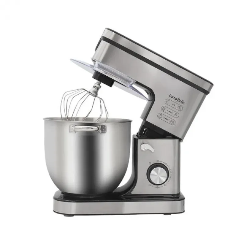 Тестомес LumaBella LB-55002 6 настроек скоростей + пульс Емкость: 12 литров Чаша из нержавеющей стали Потяните переключатель 2 опоры и крючки Эжектор для высвобождения битеров и крючков 2 взбивачки для яиц и сливок 2 крючка для затворения теста