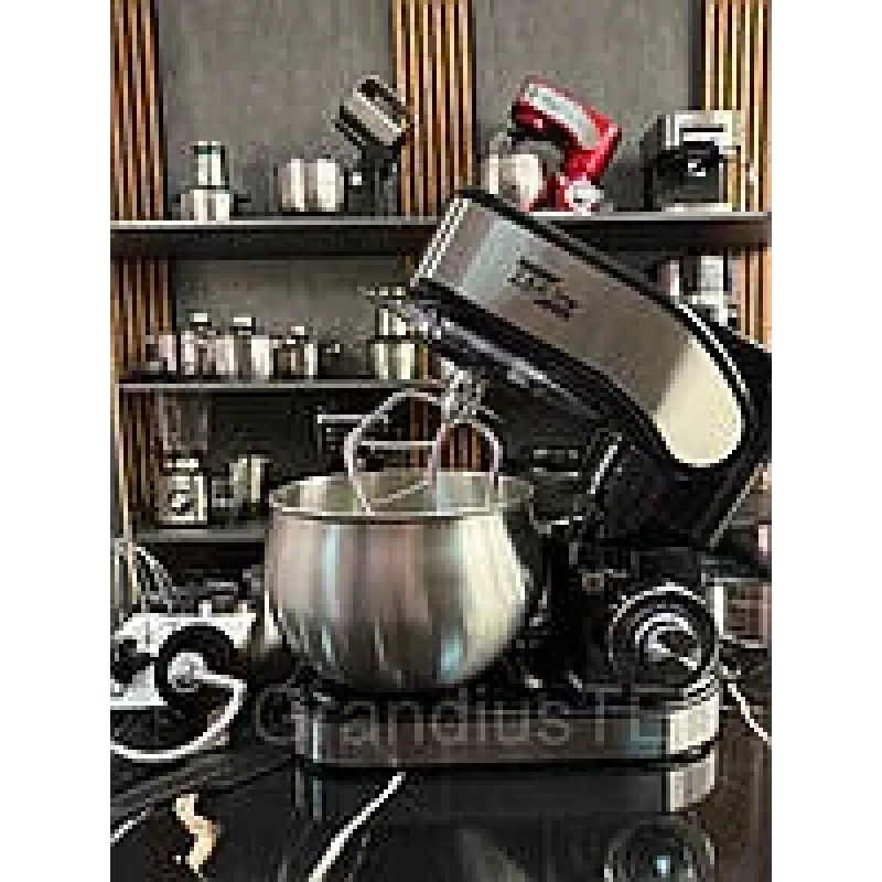Є захист від бризок з отвором для додавання інгредієнтів під час роботи тістомісу. На бічній панелі розташований регулятор швидкості, передбачено шість швидкісних режимів.