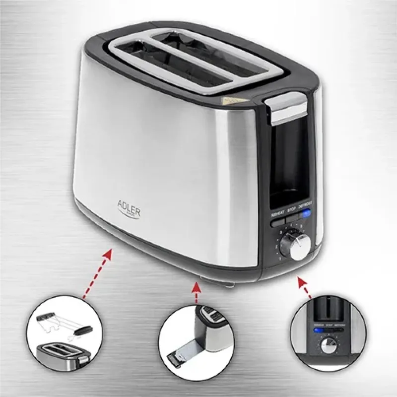 Тостер Adler AD 3214 900Вт — ідеальний вибір для смачних сніданків