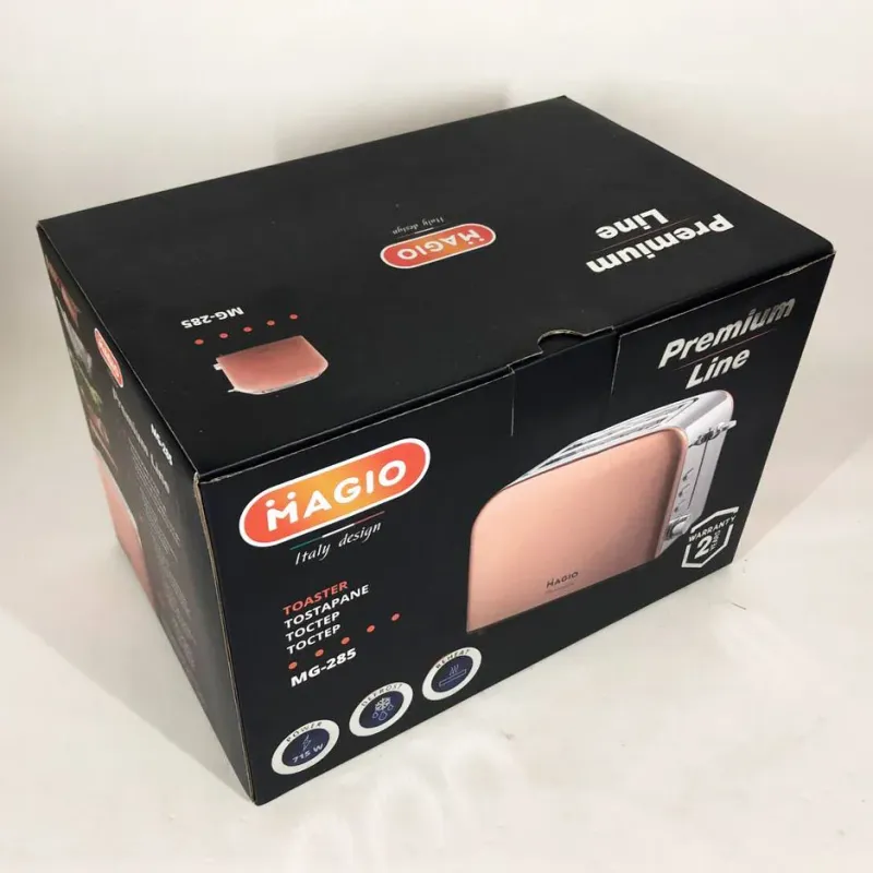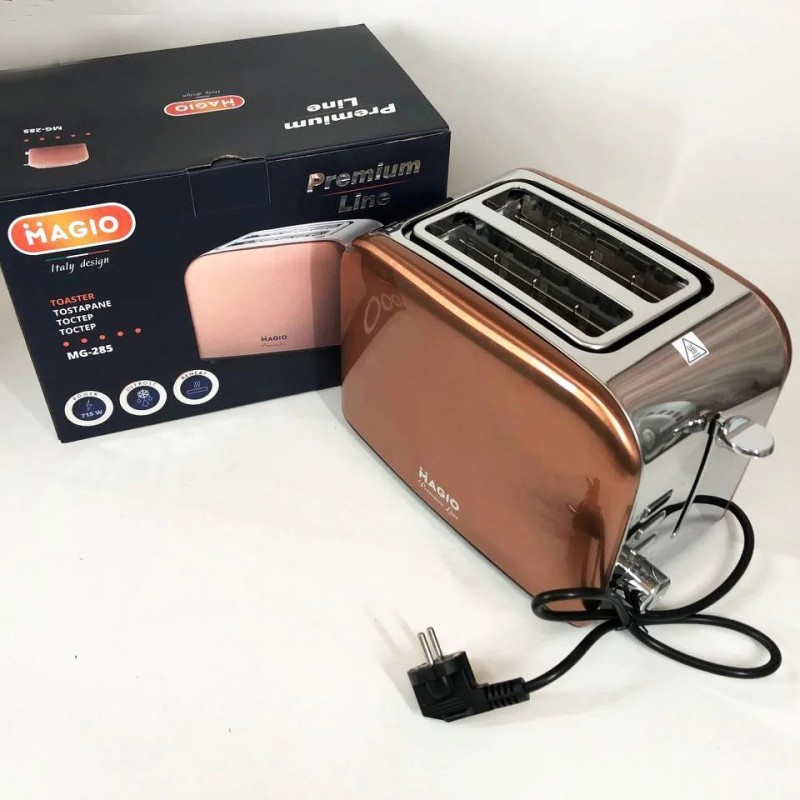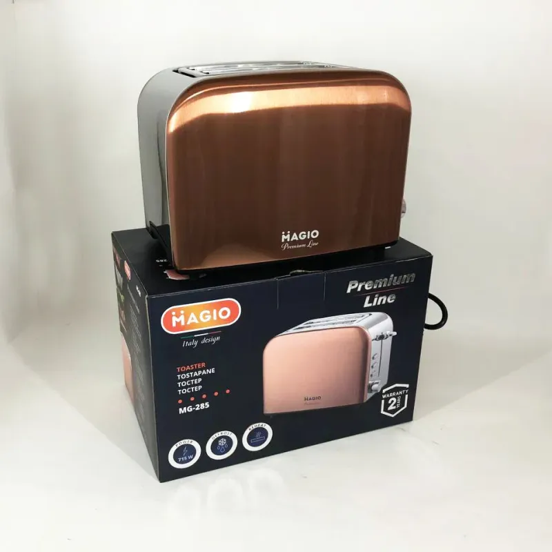 Тостер MG-285 максимально легко впишется в интерьер кухни благодаря лаконичному дизайну. Помимо дизайнерской стороны, он ещё и отлично подрумянит тосты к завтраку, так как обладает мощностью в 715 Вт.