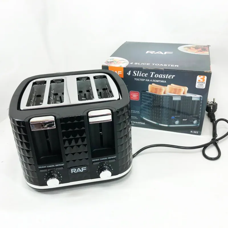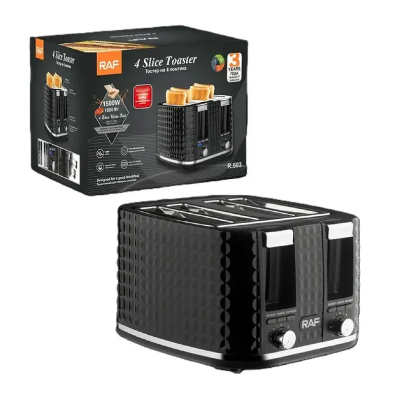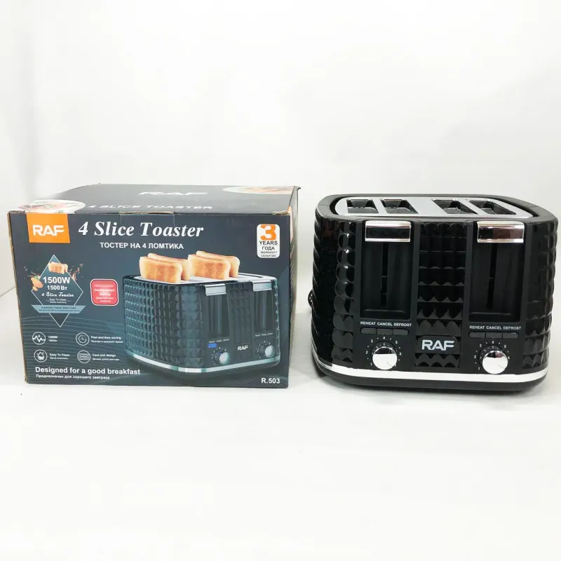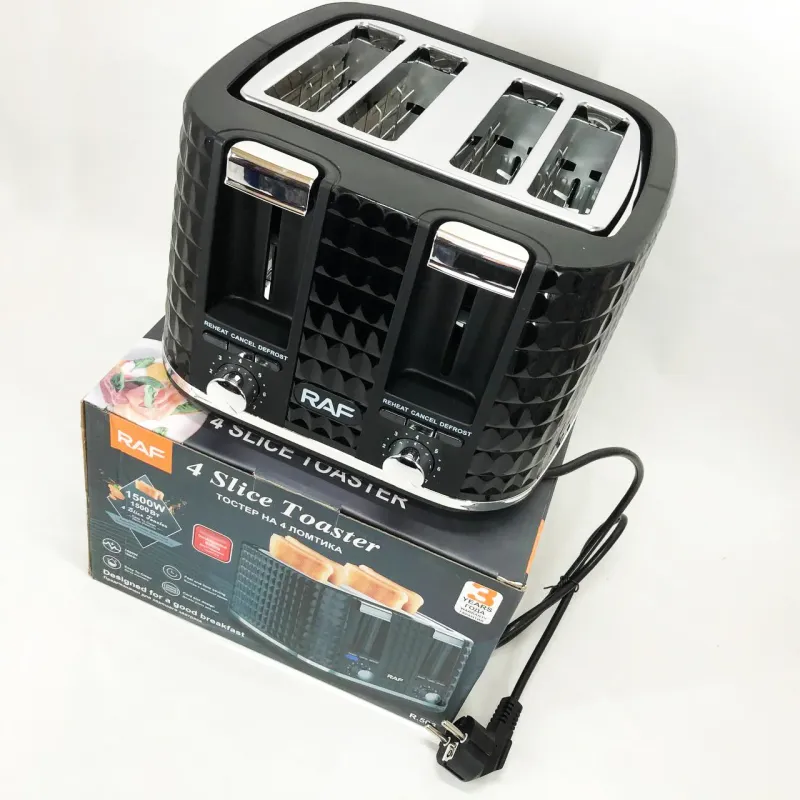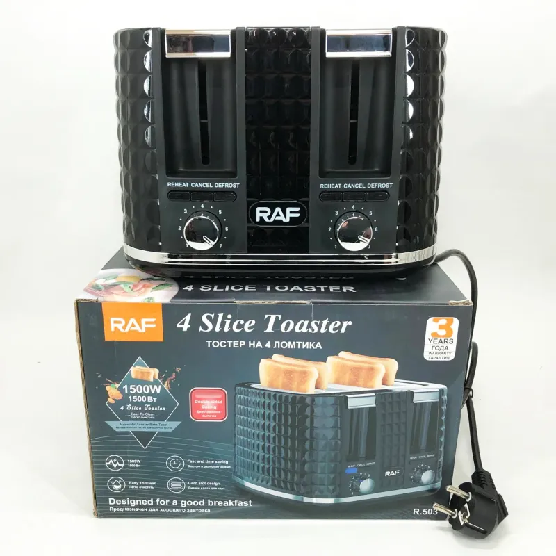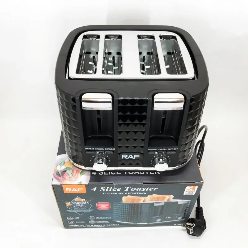 Тостер RAF R.503, 1500 Вт, 4 тоста, 6 уровней поджаривания, функции размораживания и подогрева