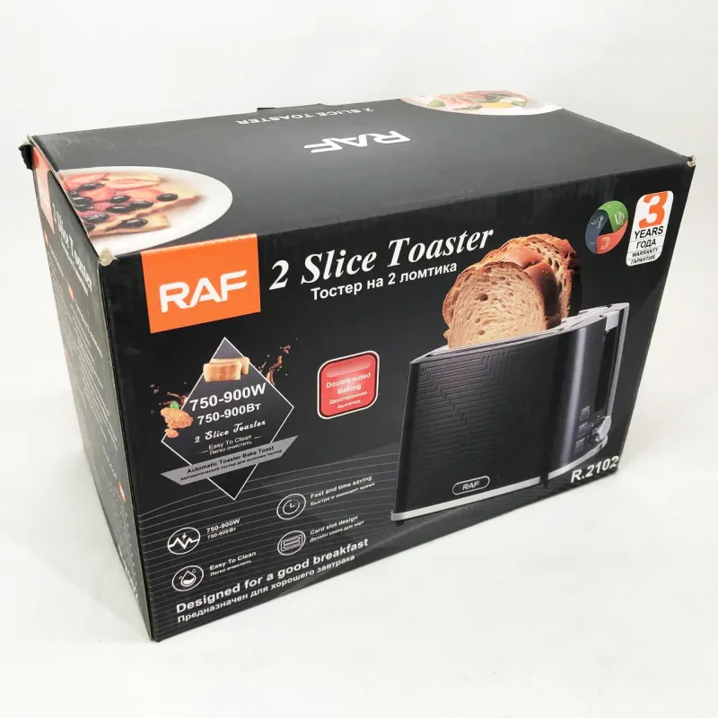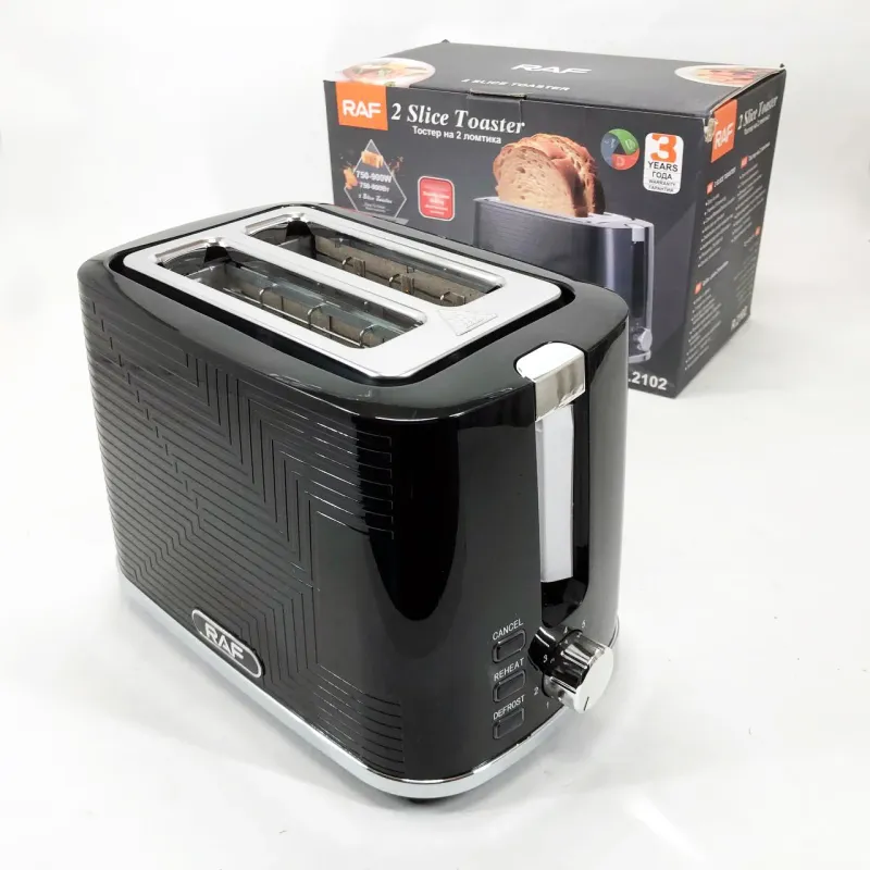 Тостер RAF R.2102, 900 Вт, 2 широких слота, функция размораживания и подогрева