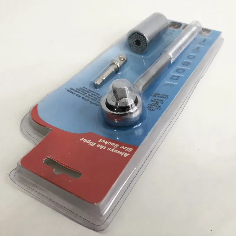 Трещотка з універсальною головкою - це інноваційний інструмент, який миттєво захоплює будь-яку форму від 7 до 19 мм. Вона забезпечує надійний і міцний захват, незалежно від форми чи розміру об'єкта.