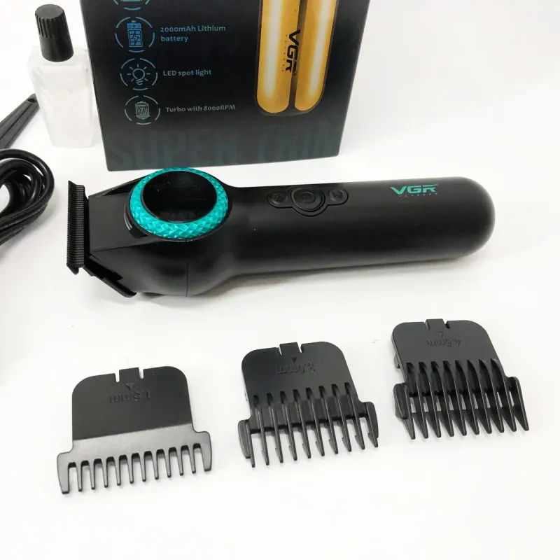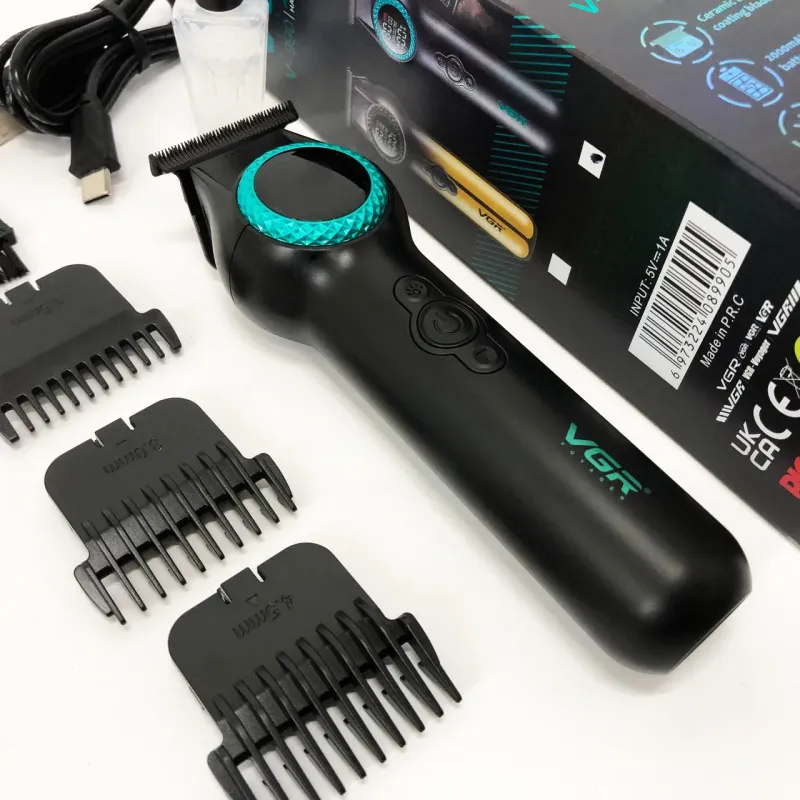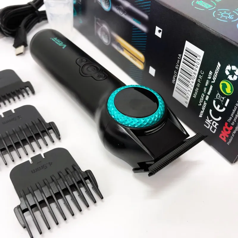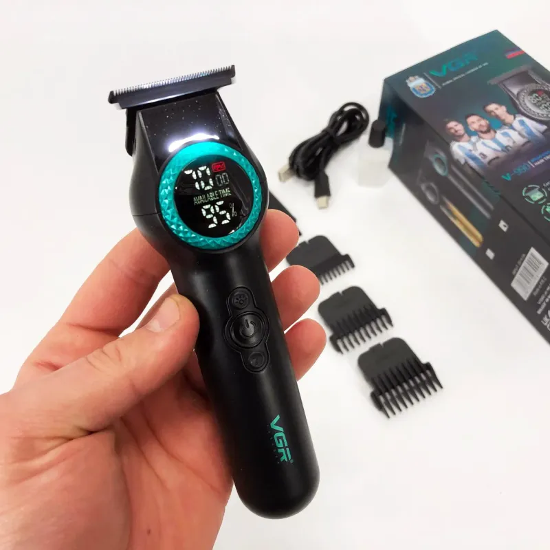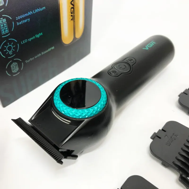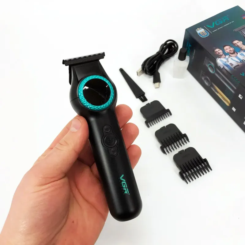 Триммер VGR V-990 с 3 насадками, керамическим лезвием, TURBO режимом, регулировкой мощности 7000-8000 об/мин, LED подсветкой и LED дисплеем