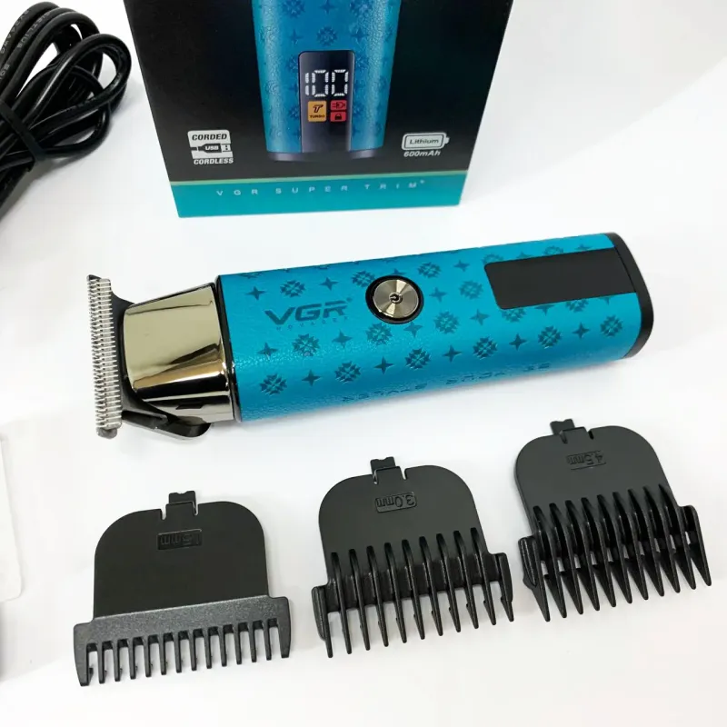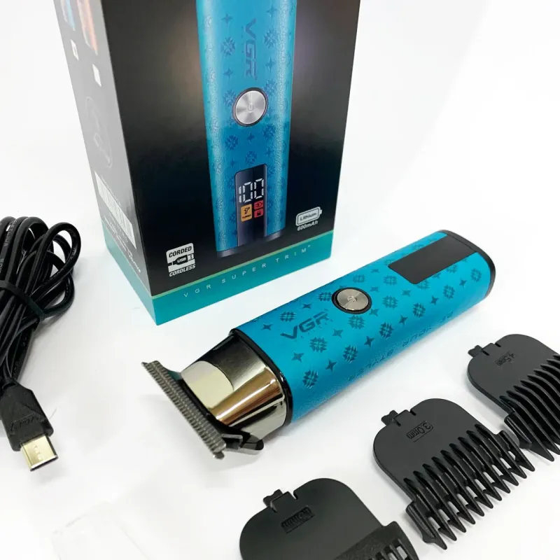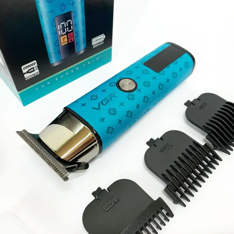 В комплект входят 3 сменные насадки, позволяющие регулировать длину среза и подстроить триммер под разные зоны ухода, от щетины до аккуратной окантовки. Интуитивный LED-дисплей отображает уровень заряда и текущий режим работы, обеспечивая удобство и контроль в процессе использования. VGR V‑943 BLUE— это стильное, простое и функциональное решение для тех, кто ценит качество и удобство в уходе за собой.