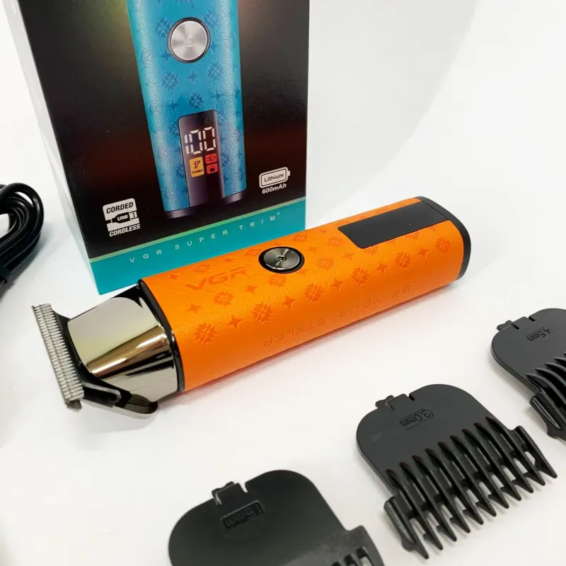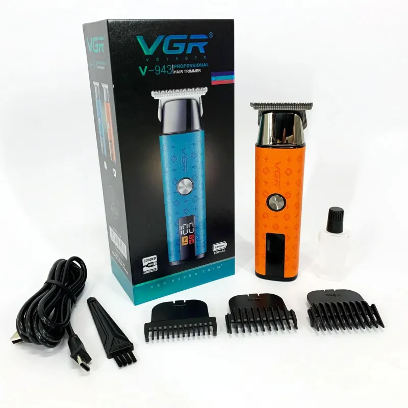 Аккумуляторный триммер VGR V‑943 ORANGE в ярком голубом корпусе — универсальное устройство для ухода за бородой, усами и контурной стрижки, идеально подходящее для домашнего использования. Эргономичный дизайн обеспечивает удобный хват и точность в работе, а компактные размеры делают его практичным для поездок и использования вне дома.