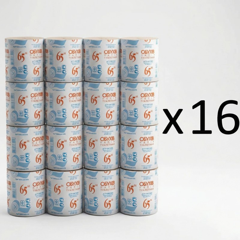 Теги: туалетний папір оптом, папір Обухів, туалетний папір 16 шт, папір 65 метрів, гігієнічний папір, папір для дому, економна упаковка