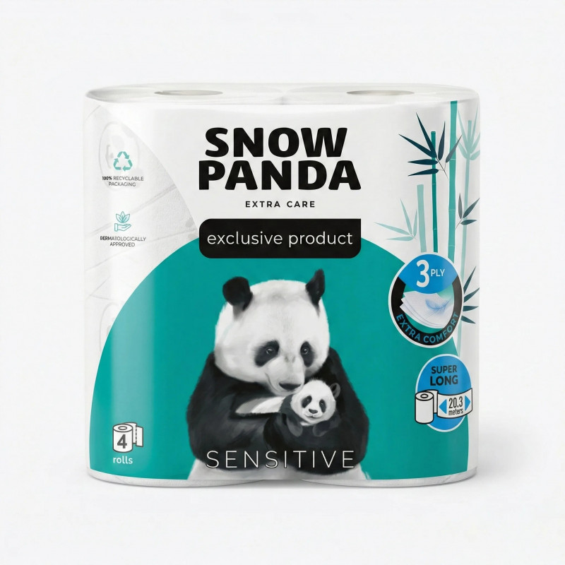 Теги: туалетний папір, сніжна панда, sensitive, super long, гіпоалергенний папір, м'який туалетний папір, папір для чутливої шкіри