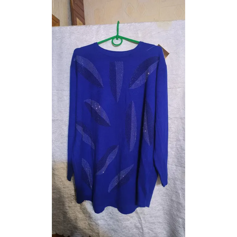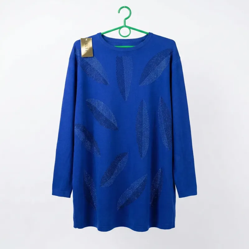 🛒 Шукаєте надійний товар? Ви можете купити Туніка жіноча синя з камінням. Нарядний подовжений светр з візерунком "Листя", трикотаж в нашому інтернет-магазині Shtyrman. Гарантія якості та швидка доставка по всій Україні!