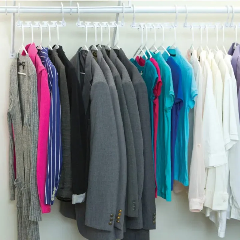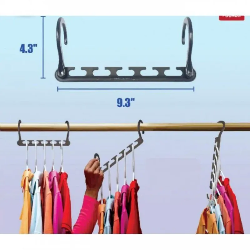 Вещи надежно удерживаются зажимами, юбки вешаются на специальные петли. Универсальная вешалка требует минимум места в шкафу и при транспортировке. В одном наборе содержится восемь вешалок. Каждая вешалка имеет пять небольших перекладин. Чтобы разместить одежду на Wonder Hanger , необходимо выдвинуть перекладину.