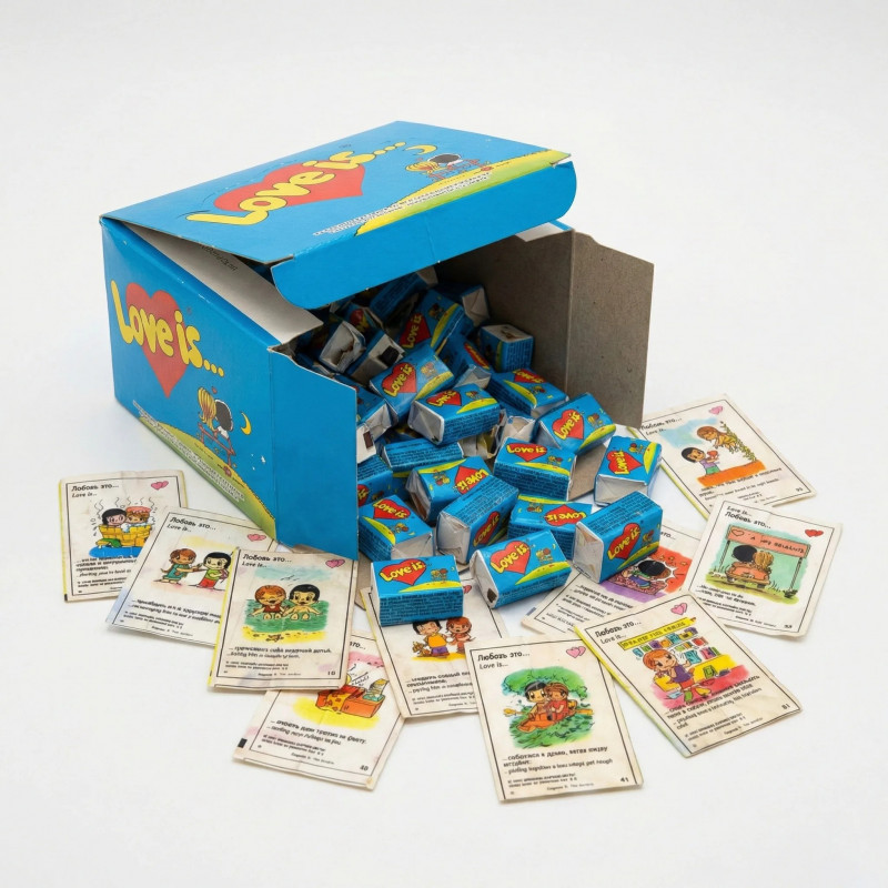 Пам'ятаєте той неповторний смак і романтичні наліпки з коміксами? Культова жувальна гумка Love is повертається! Упаковка 100 штук — ідеальне рішення для тих, хто хоче завжди мати під рукою улюблене ласощі або організувати солодкий подарунок.