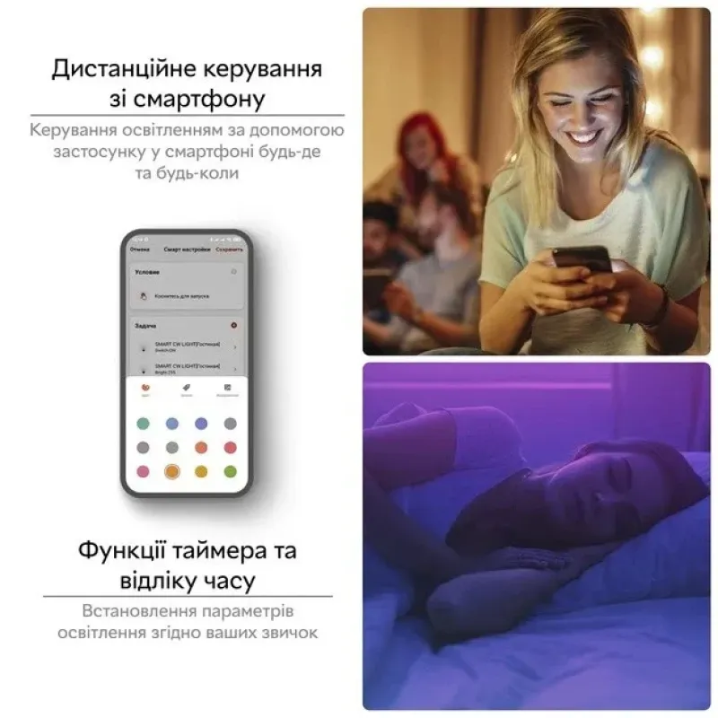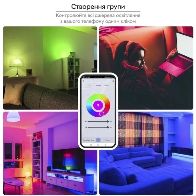 - **Автоматизація** — налаштуйте таймери, сценарії та синхронізацію з музикою