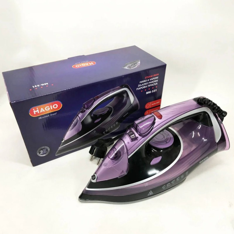 Стильный и сверхмощныйутюг MG-531 научит вас любить глажку. Мощность утюга – 3000 Вт, что обеспечивает быстрое и эффективное проглаживание вещей. Утюг оснащен необходимой современному обществу функцией автоматического отключения. Прибор автоматически отключится, если он остался без присмотра. Высококлассная керамическая подошва гарантирует идеальное скольжение по поверхности ткани, а продуманная форма и специальные отверстия –. равномерное распределение пара для легкого разглаживания складок. Мощный паровой удар позволит осилить самые сложные места, разгладить сильно зимние и пересохшие вещи. Функция вертикального отпаривания поможет справиться со шторами или пальто, не снимая с вешалки, а также идеально подходит для деликатных тканей. Система “Антикапля” предотвращать попадание воды на одежду, которая при низкой температуре не успевает превратиться в пар. Она избавит Вас от постоянных разводов на одежде! Для того чтобы увлажнить и улучшить качество глажения, утюг оснащен функцией разбрызгивания воды.