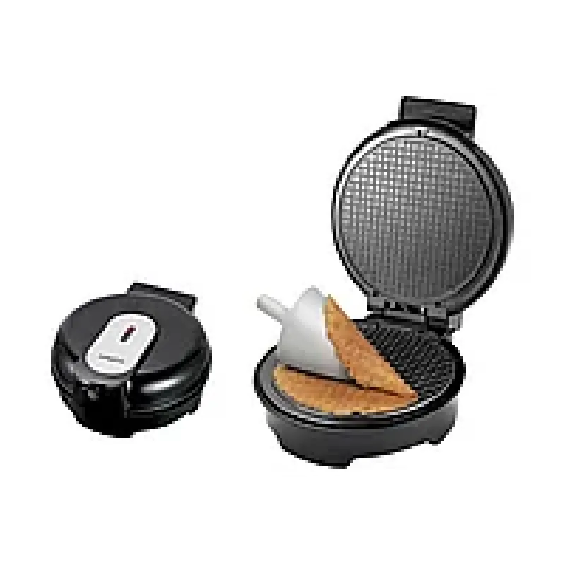 Вафельниця – це невеликий кухонний пристрій для приготування вафель та інших страв. У цій вафельниці Ви можете приготувати вафлі, а також, наприклад, хрусткі деруни або оладки. Електрична вафельниця випікає круглі вафлі, які можна згорнути у трубочки або зробити вафельний тортик.