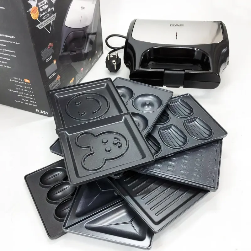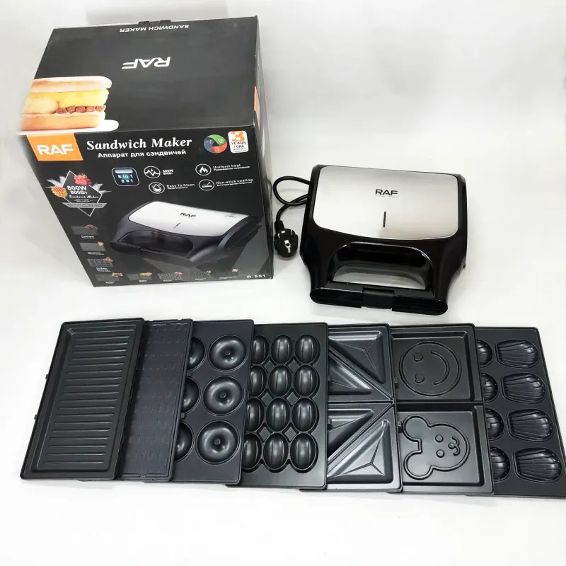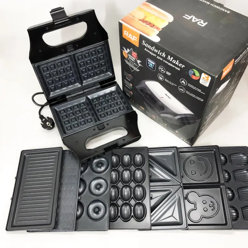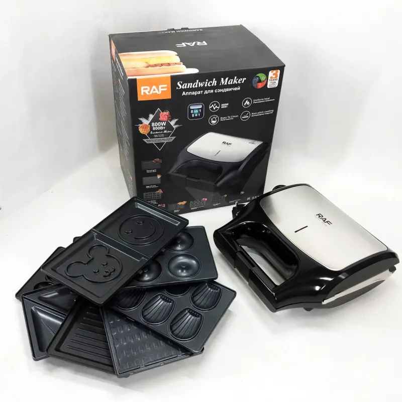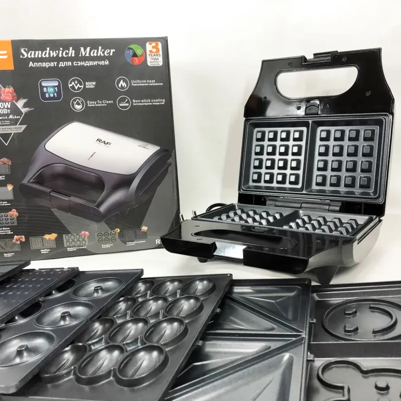 Вафельница бутербродница сендвичница гриль электрическая 8 в 1 RAF R.551 850W Мультипекарь со 8 формами