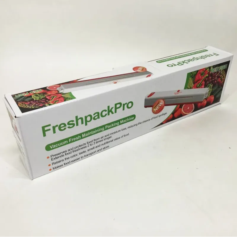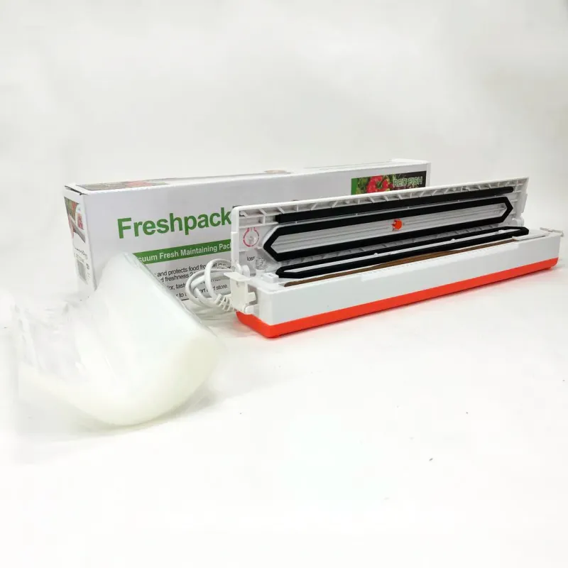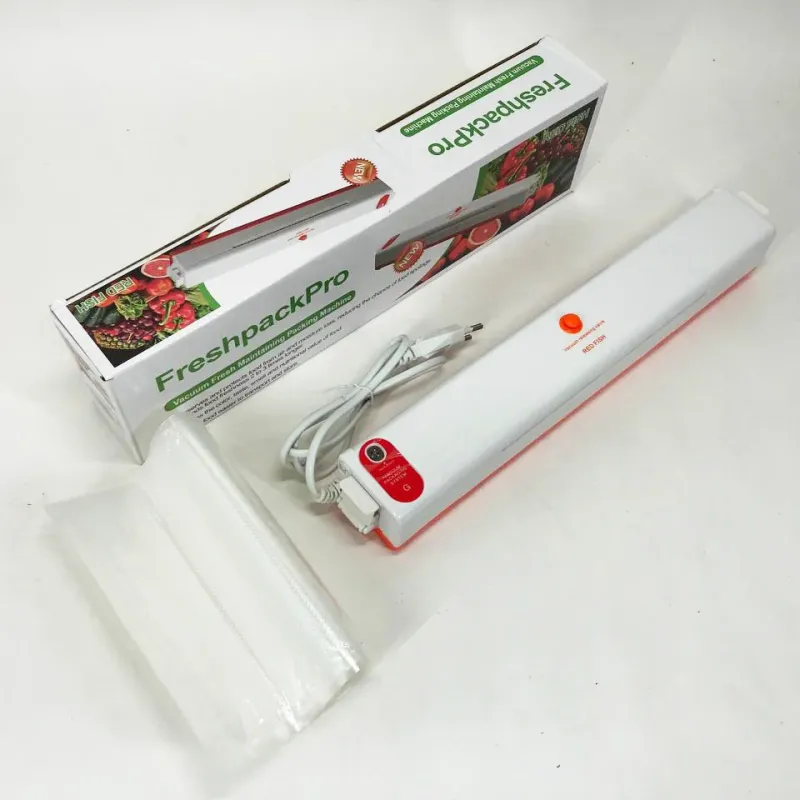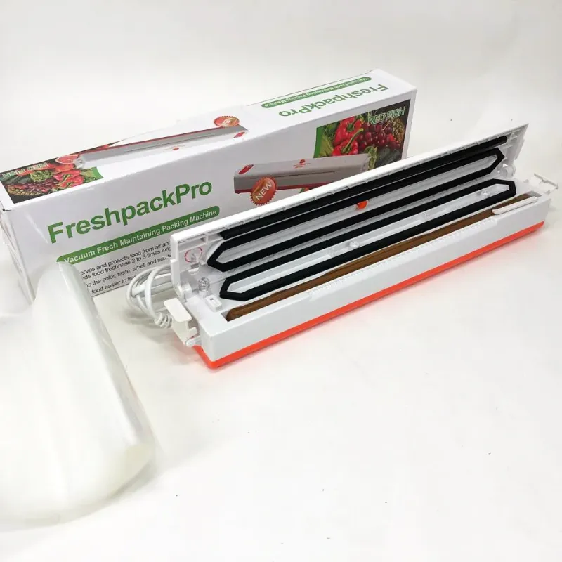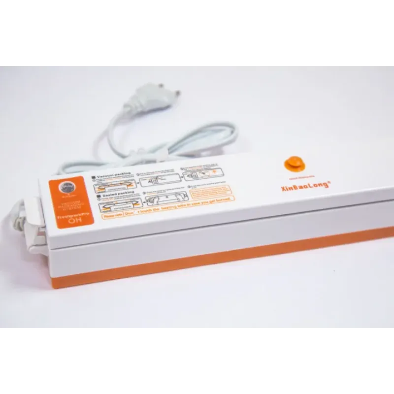 Вакууматор Freshpack Pro - це ідеальне рішення для тих, хто хоче зберігати продукти свіжими та ароматними. Цей вакуумний упаковщик еди призначений для домашнього використання та має оранжевий колір.
