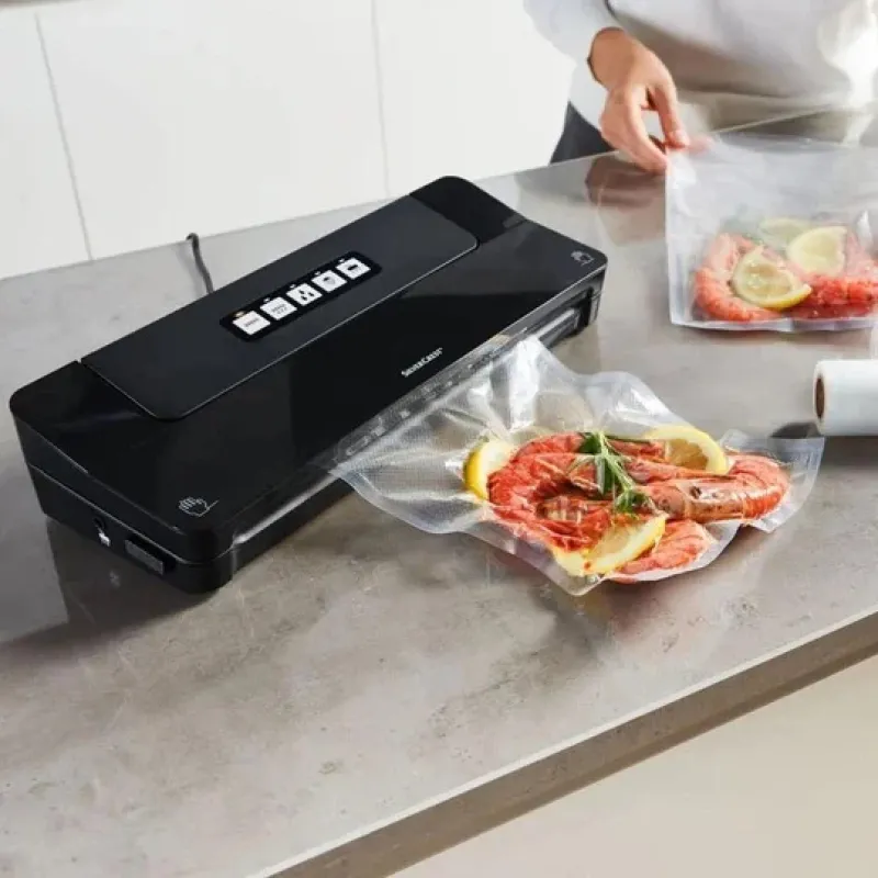 • Упаковочный режим для влажных продуктов: Специальная функция для герметизации продуктов с высоким содержанием жидкости без риска утечки.