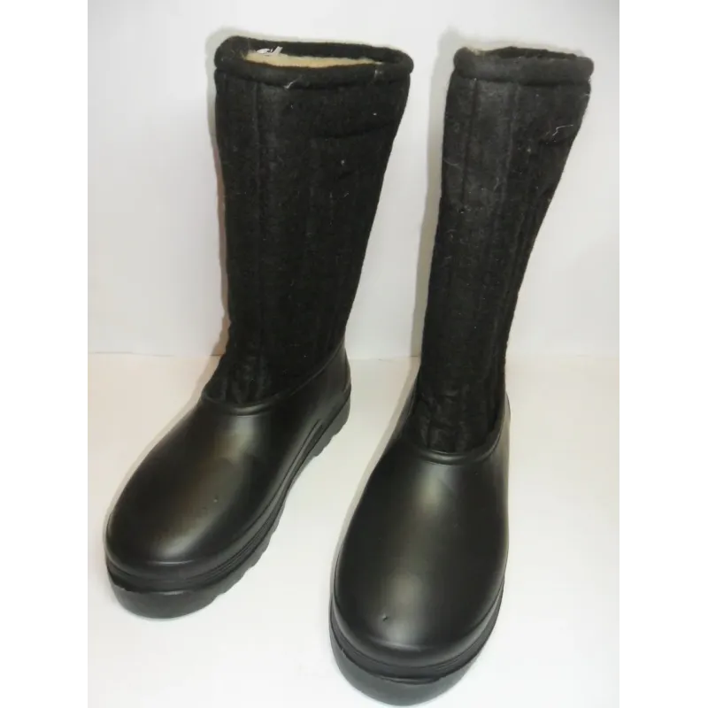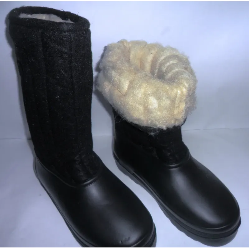 Натуральна повсть чудово зберігає тепло навіть при -30°C, а біле хутро всередині створює додатковий комфорт. Шита конструкція забезпечує міцність та довговічність, а чорний колір практичний у використанні.