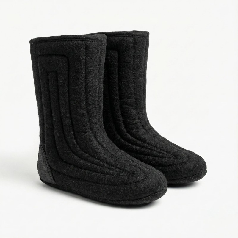 Забудьте про замерзлі ноги та дискомфорт у холоди. Валянки шиті з чорним хутром — це перевірена століттями технологія в сучасному виконанні. Натуральна овчина зберігає тепло навіть при -40°C, а стильне чорне хутро робить взуття універсальним для будь-якого образу.