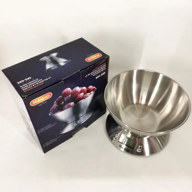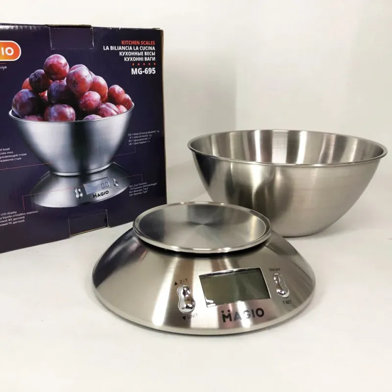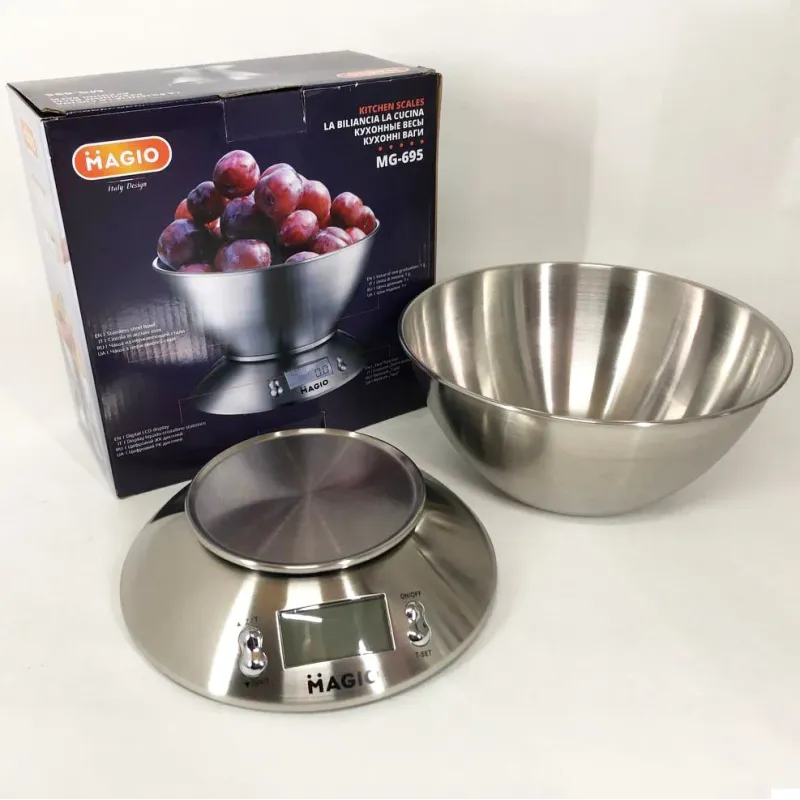 Весы кухонные на 5 кг из нержавеющей стали MAGIO MG-695, весы мини, Весы кухонные со съемной чашей