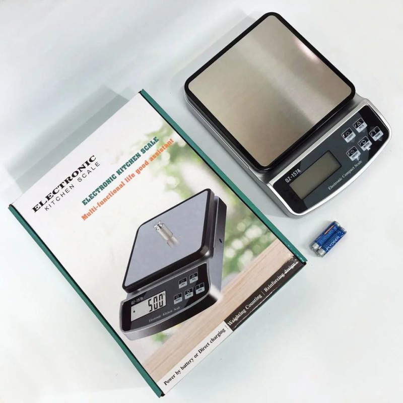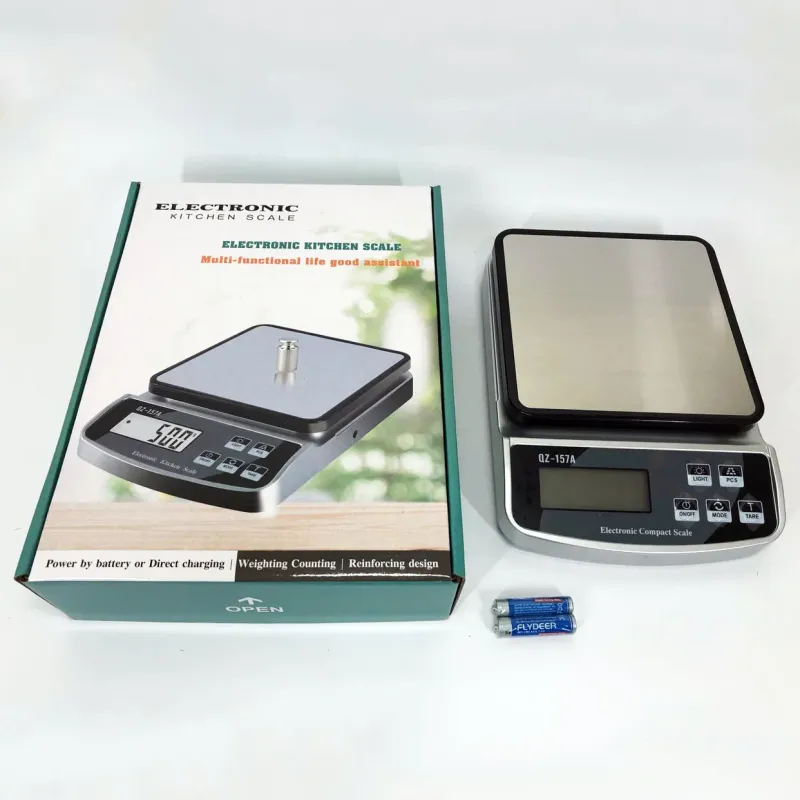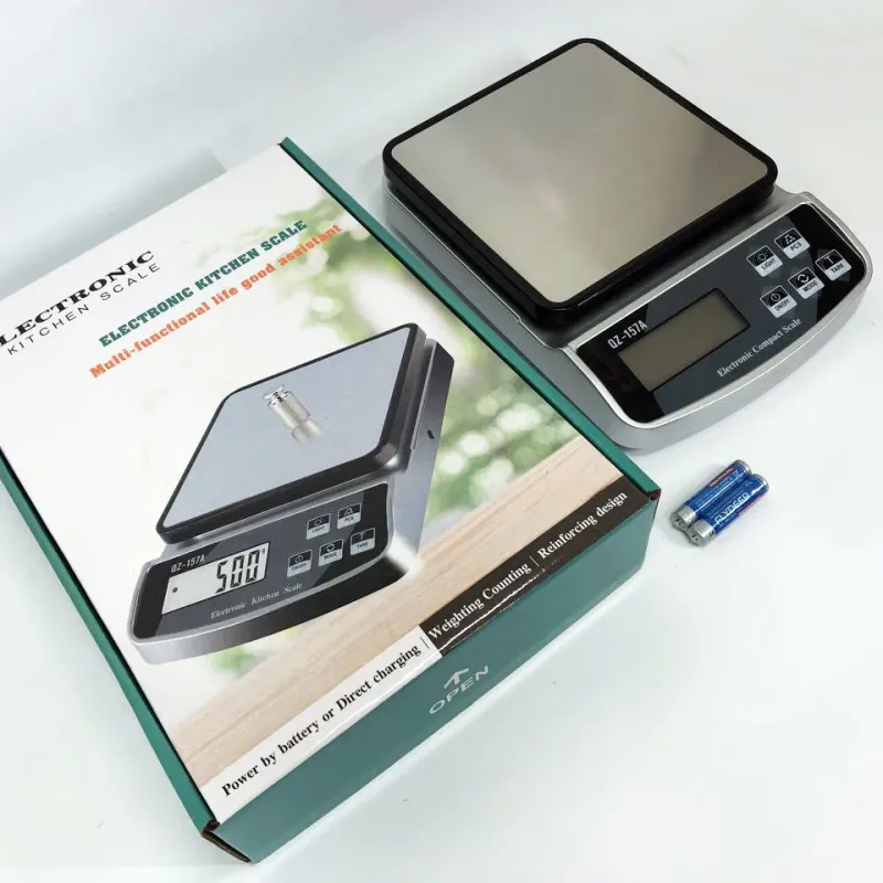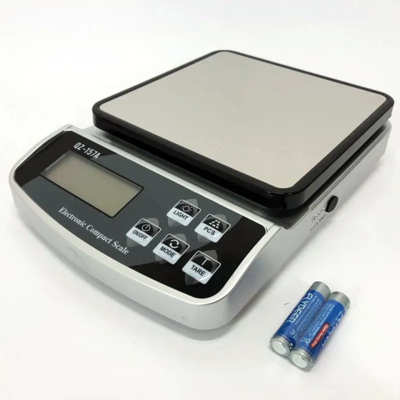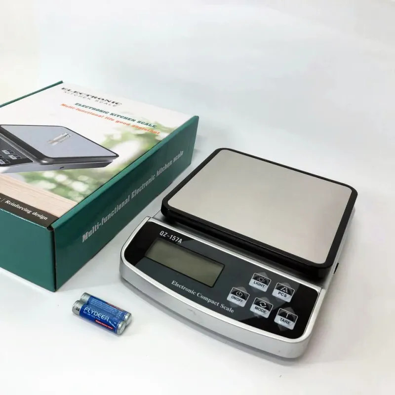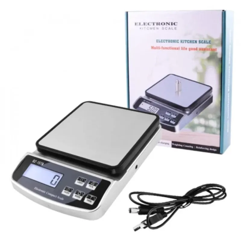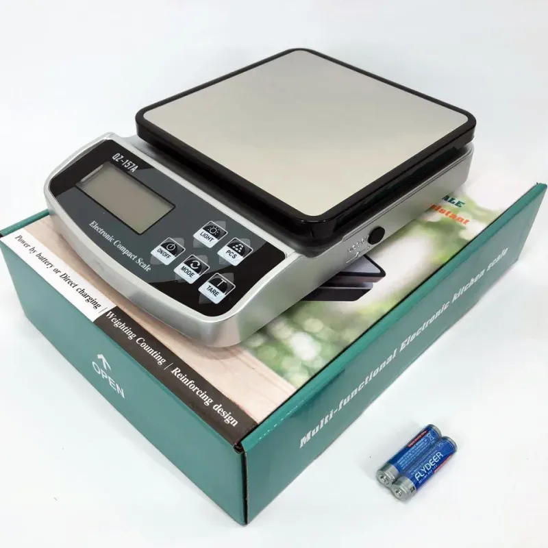 Электронные кухонные весы QZ-157A до 10 кг с функцией подсчета количества. Выполнены в прочном пластиковом корпусе, площадка покрыта нержавеющей сталью.