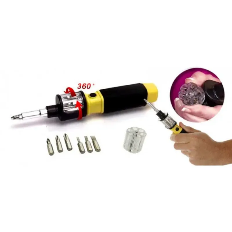Вращающаяся отвертка многофункциональная со сменными насадками BIT 360