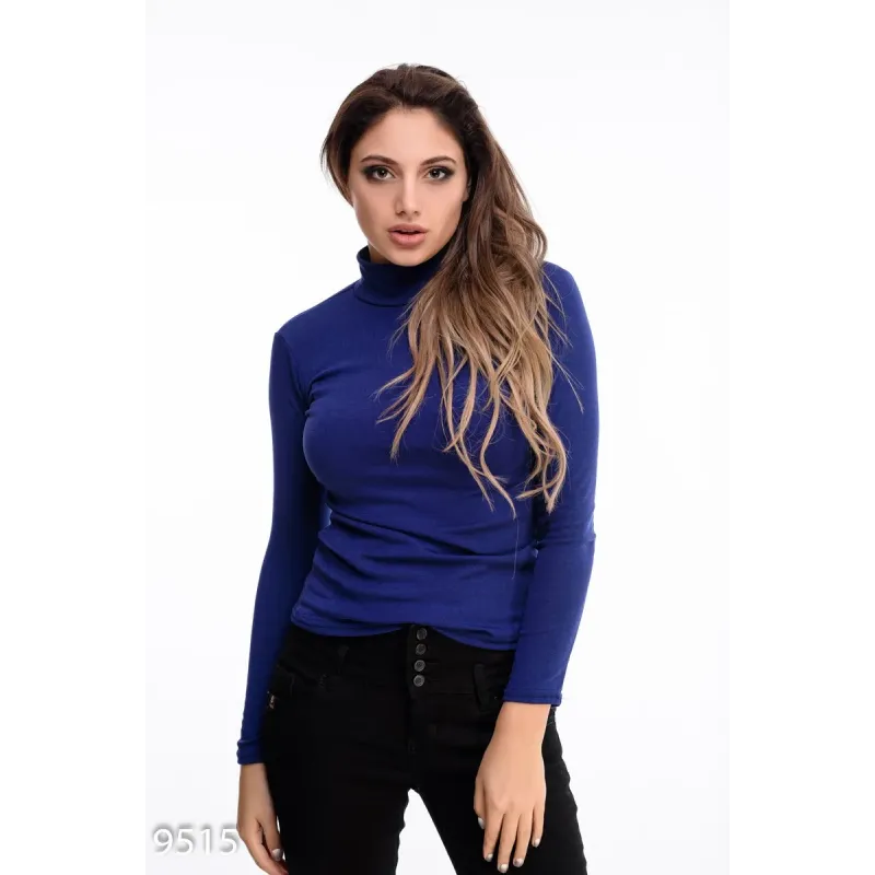 Яскраво-синій утеплений повсякденний трикотажний гольф на флісі