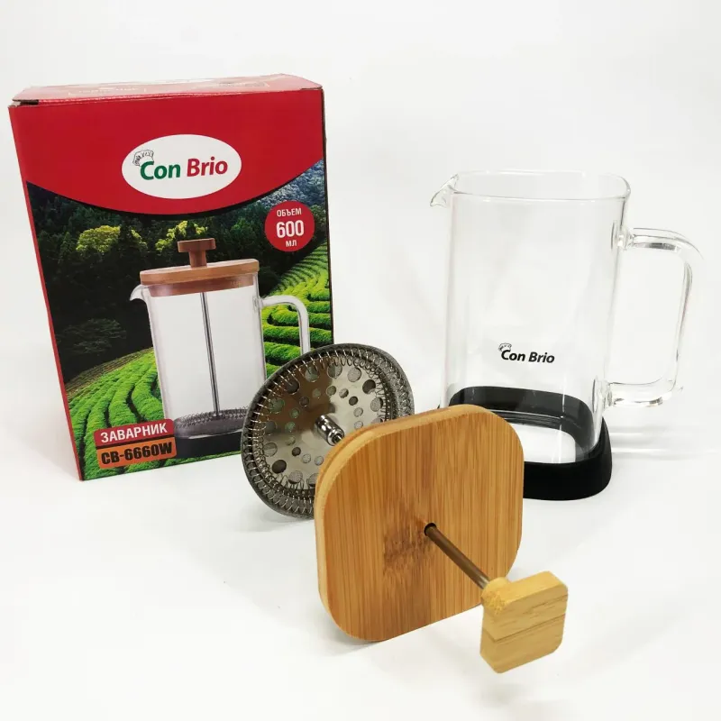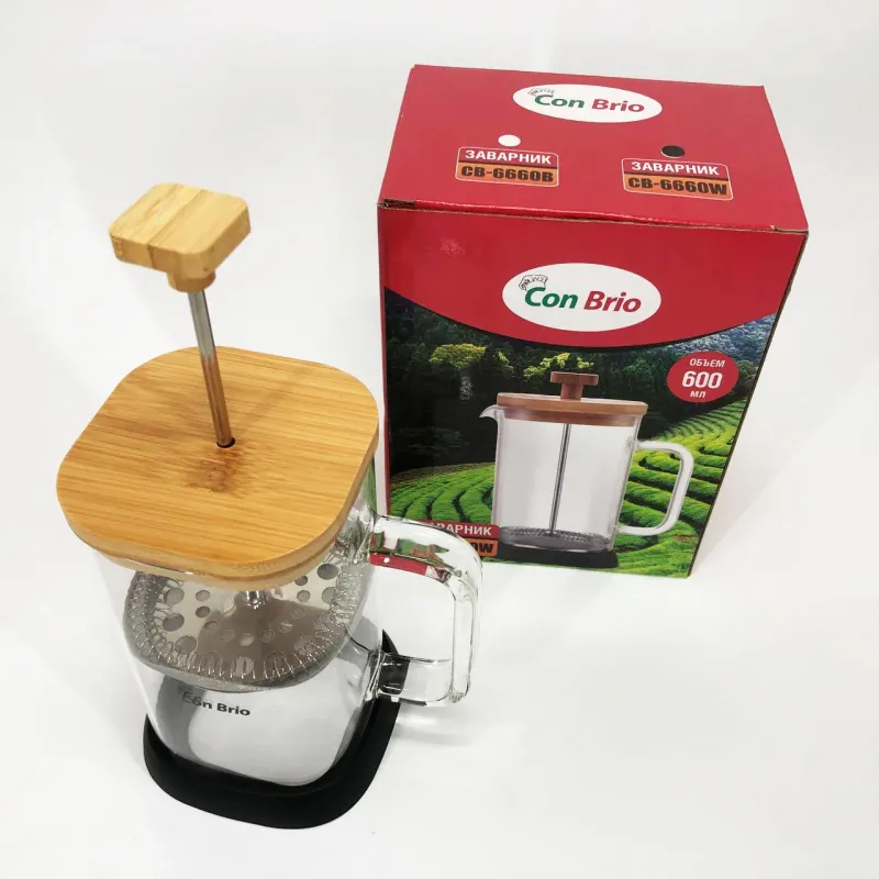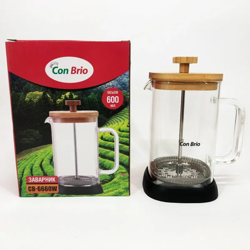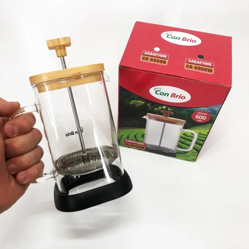 Con Brio 600 мл ідеально підходить для домашнього використання, де потрібен швидкий і простий спосіб приготування кави або чаю без зайвих зусиль. Завдяки прозорій колбі користувач має повний контроль над інтенсивністю заварювання, що дає змогу досягти ідеального смаку. Також ця модель стане в пригоді на роботі, дозволяючи легко приготувати свіжий напій прямо на робочому місці, не відволікаючись на складні процедури. Термостійке скло і ручка мінімізують ризик опіків, підвищуючи комфорт і безпеку під час експлуатації.