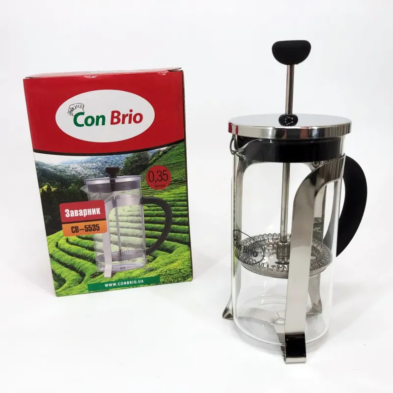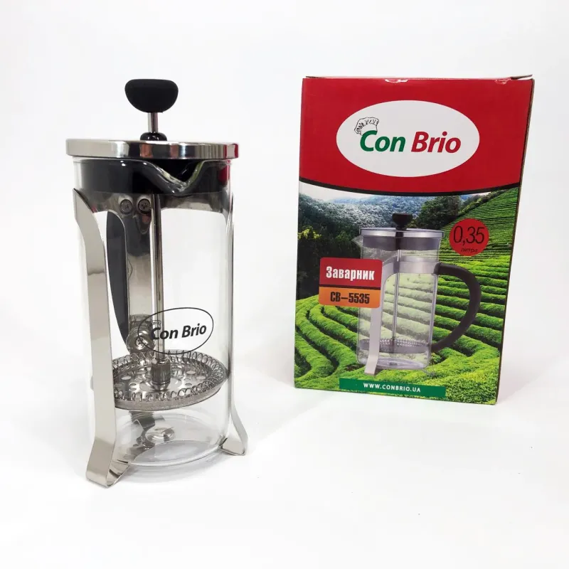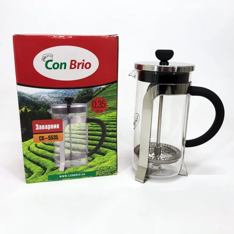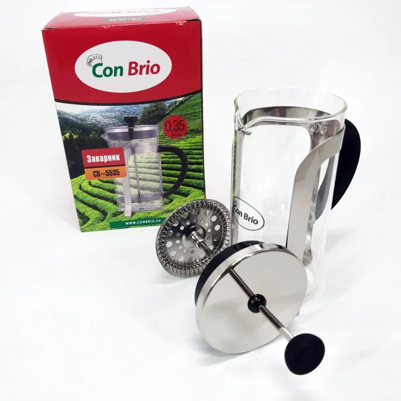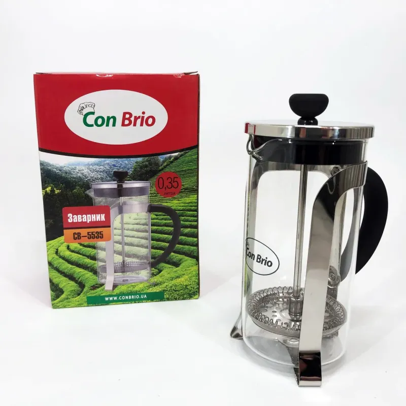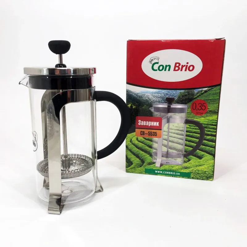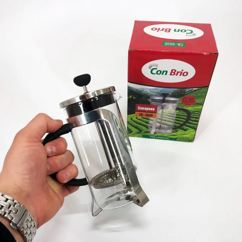 Заварник 350 мл стекло + нержавеющая сталь Con Brio CB-5535, Чайник для заваривания трав красивый