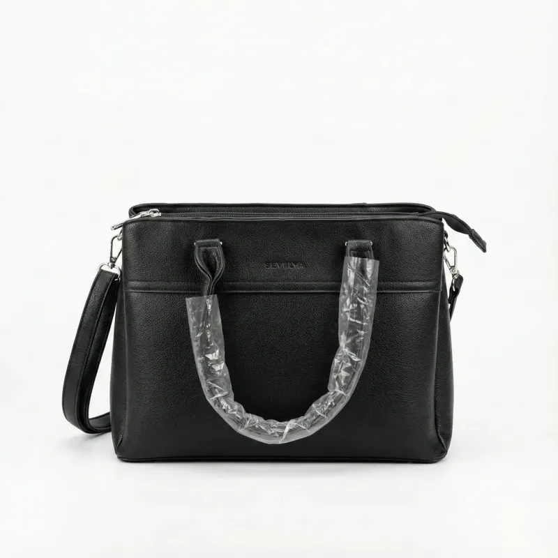 Ця елегантна чорна сумка бренду Sevilya створена для жінок, які віддають перевагу діловому стилю та чітким лініям. Каркасна форма дозволяє сумці ідеально зберігати свій вигляд навіть коли вона порожня, а текстурна еко-шкіра надає їй презентабельності та захищає від подряпин. Головна перевага цієї моделі — потрійна організація простору. Сумка має три повноцінних відділення, кожне з яких закривається на окрему надійну блискавку. Це дозволяє ідеально розсортувати речі: робочі документи окремо, косметику окремо, а особисті речі (гаманець, телефон) — у третьому відсіку. Лаконічний дизайн доповнений сріблястим логотипом на фасаді. Зручні заокруглені ручки дозволяють носити сумку в руці або на лікті, а довгий ремінець у комплекті дає можливість повісити її на плече. На тильній стороні є кишеня на блискавці для швидкого доступу. Характеристики: Матеріал: Якісна еко-шкіра (трисмає форму) Колір: Чорний (Black) Тип: Каркасна / Ділова Кількість відділень: 3 окремих на блискавках Особливості: Логотип Sevilya, жорстке дно Комплектація: Довгий плечовий ремінь Стиль: Класичний / Офісний