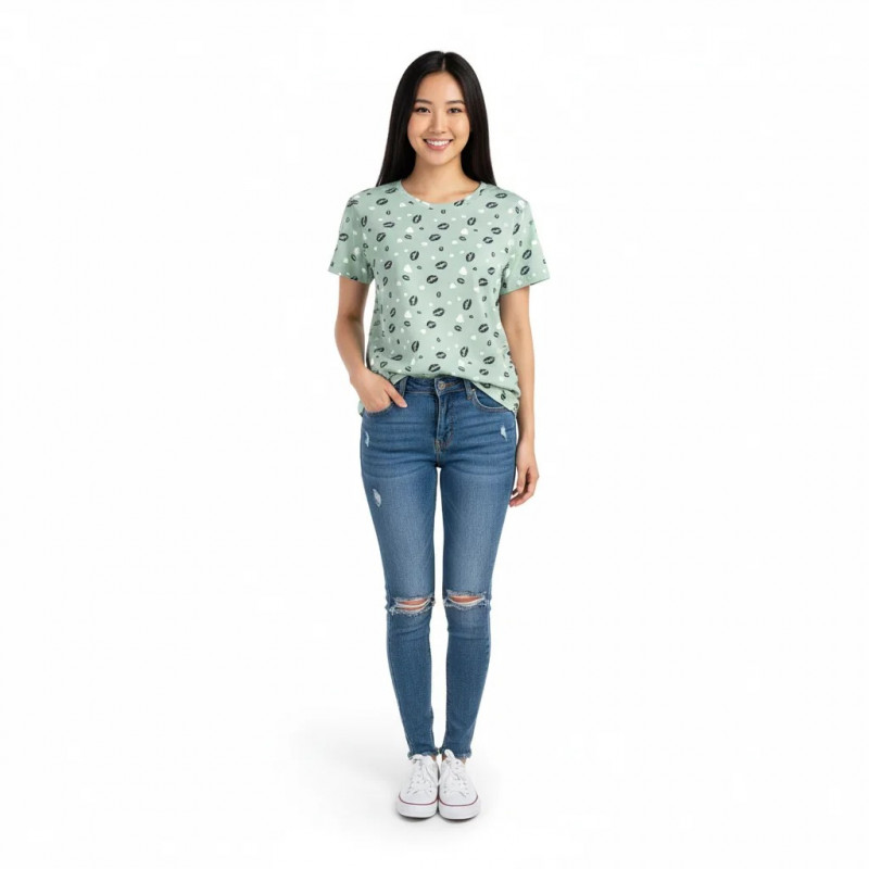 Хочете виділитися з натовпу та створити незабутній образ? Ця стильна футболка у свіжому світло-зеленому кольорі з романтичним принтом стане вашим улюбленим предметом одягу для будь-якої нагоди.