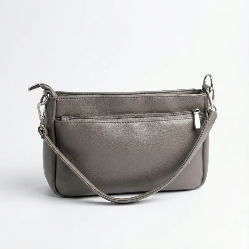 Ця стильна міні-сумочка кольору "Тауп" (насичений темно-бежевий) — ідеальний аксесуар для активних жінок. Універсальний кавовий відтінок робить її більш практичною за світлі аналоги та дозволяє носити її у будь-яку пору року. Компактна модель типу "крос-боді" звільняє руки, вміщуючи при цьому телефон, ключі, гроші та косметику. Головна "фішка" моделі — продумана організація. Сумка розділена на три незалежні відділення на блискавках, що дозволяє ідеально впорядкувати речі. Додаткова кишеня на лицьовій стороні з елегантним металевим бігунком додає зручності та служить стильним акцентом. Виготовлена зі зносостійкої еко-шкіри з приємною текстурою. Довгий ремінець регулюється, дозволяючи налаштувати комфортну висоту для носіння на плечі або через плече. Характеристики: Матеріал: Еко-шкіра (зерниста текстура) Колір: Тауп (темно-бежевий / кавовий) Тип: Крос-боді / Месенджер Кількість відділень: 3 основних на блискавці + передня кишеня Ремінь: Регульований Розмір: Маленький (компактний) Стиль: Повсякденний / Casual