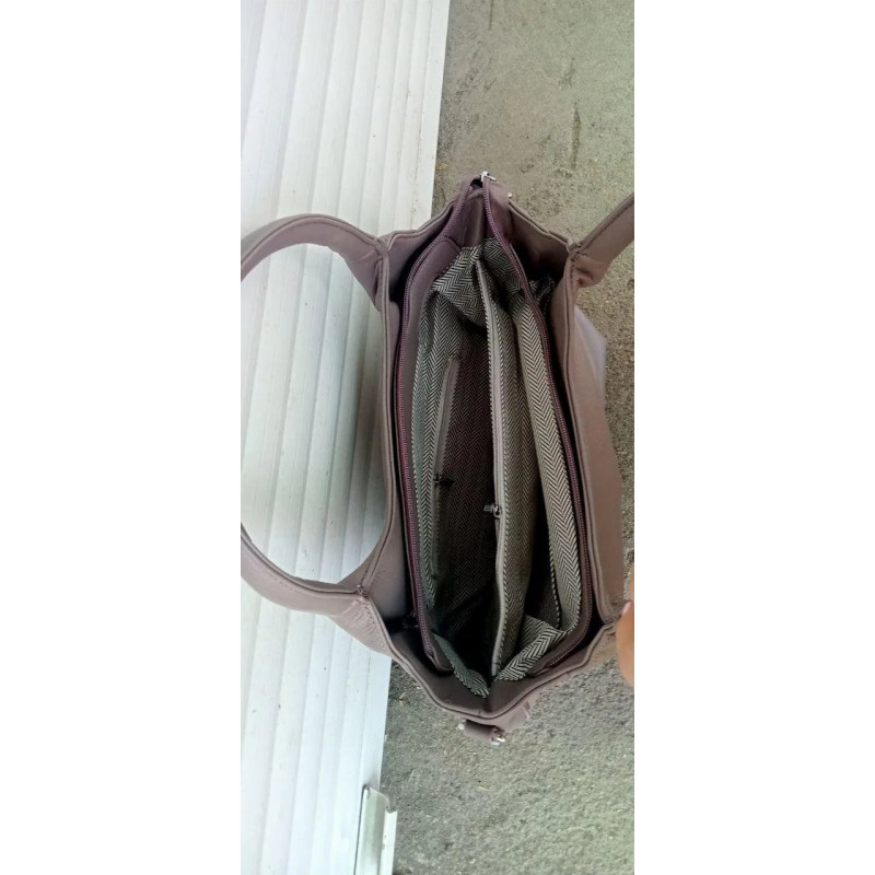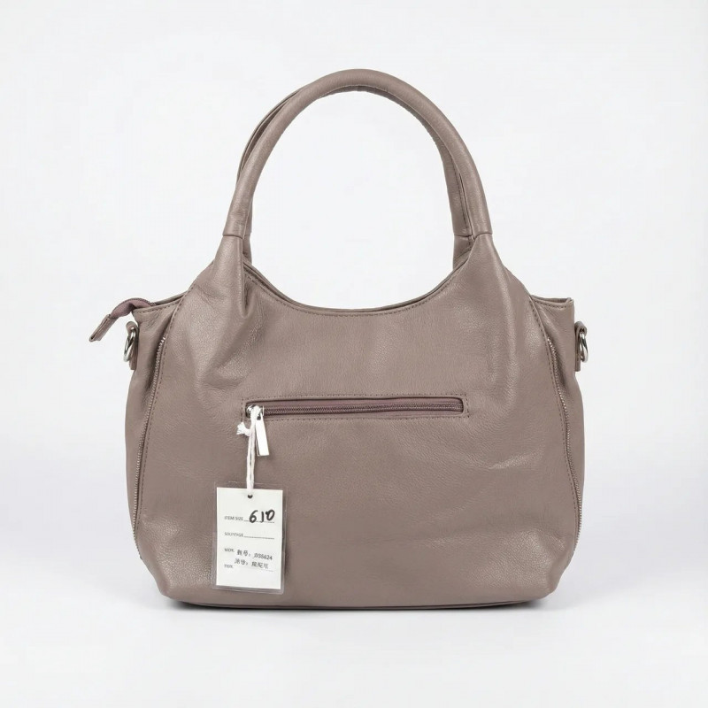 Ця стильна жіноча сумка ідеально підходить для тих, хто цінує комфорт та елегантність у повсякденному житті. Виконана з якісної м'якої еко-шкіри, вона приємна на дотик і чудово тримає форму, залишаючись при цьому зручною та місткою. Універсальний відтінок "Тауп" (сіро-бежевий) легко поєднується з будь-яким гардеробом — від ділового костюма до джинсів. Модель продумана до дрібниць: зручна ручка дозволяє носити сумку на плечі або в руці. Декоративні блискавки з боків додають сучасності дизайну. Всередині сумка має функціональний простір з кількома відділеннями та кишенями на блискавці, що дозволяє організувати всі необхідні речі (телефон, гаманець, косметичку). На тильній стороні розташована додаткова кишеня швидкого доступу. Характеристики: Матеріал: Якісна еко-шкіра (м'яка, зносостійка) Колір: Тауп (темно-бежевий / капучіно) Тип застібки: Блискавка Відділення: Основне відділення з перегородкою на блискавці, внутрішні кишені, задня кишеня Стиль: Повсякденний (Casual) / Класичний Сезон: Всесезонна