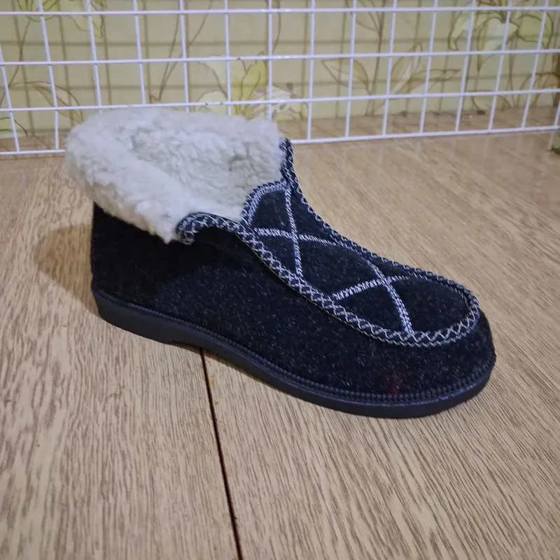 Теплі жіночі валянки для дому. Верх — щільне сукно (повсть) з принтом. Всередині — тепле хутро. Легкі, м'які, зручні для людей похилого віку. Розміри 36-41. Теплі жіночі валянки для дому. Верх — щільне сукно (повсть) з принтом. Всередині — тепле хутро. Легкі, м'які, зручні для людей похилого віку. Розміри 36-41. Повний опис: Жіночі домашні бурки (бабуші) — це втілення домашнього затишку та турботи про здоров'я ніг. Ця модель поєднує традиційне тепло валянок та зручність кімнатних капців. Верх виготовлений з якісного взуттєвого сукна (повсті), яке дозволяє ногам "дихати", але чудово зберігає тепло. Моделі часто прикрашені квітковими принтами або стриманими візерунками. Всередині бурки утеплені густим штучним хутром. Завдяки широкій халяві та відсутності застібок, їх дуже легко взувати, що особливо важливо для літніх людей. Чому це ідеальний вибір: Здоров'я ніг: Сухе тепло корисне для суглобів. Легкість: Взуття майже не відчувається на нозі. Практичність: Висока посадка (закриває кісточку) захищає від протягів. Дизайн: Приємні кольори та візерунки піднімають настрій. Характеристики: Тип: Бурки жіночі / Бабуші / Домашні валянки Матеріал верху: Текстиль (сукно/повсть) Утеплювач: Штучне хутро Підошва: ПВХ (легка, не ковзає) або текстильна (уточнюйте модель) Розміри: 36, 37, 38, 39, 40, 41