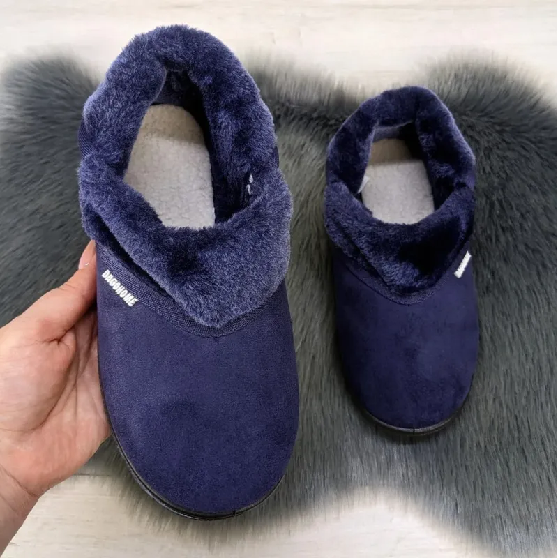 Максимальне тепло та комфорт для ваших ніжок! Жіночі домашні капці-чобітки від бренду Dago Home — це ідеальне рішення для холодної пори року. Завдяки високому фасону ("бабуші"), вони надійно зігрівають не тільки стопу, а й щиколотку, даруючи відчуття повного затишку. Верх виконаний з м'якого текстилю під велюр (еко-замша) глибокого синього кольору, який виглядає стильно та дорого. Всередині чобітки повністю утеплені густим штучним хутром. Гнучка та міцна підошва прошита по контуру, що гарантує довговічність взуття. Ця модель стане чудовим подарунком для себе або близьких. Характеристики: Матеріал верху: Текстиль (під велюр/замшу) Матеріал підкладки: Штучне хутро (густе та тепле) Підошва: ПВХ (прошита, чорного кольору) Тип: Закриті (чобітки/бабуші) Колір: Темно-синій Сезон: Зима / Холодна осінь Розмірна сітка: 36-41 Бренд: Dago Home (Україна)