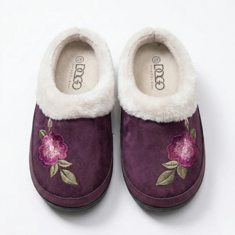 Жіночі домашні капці Dago Style фіолетові теплі на хутрі з вишивкою (36-41) закриті 38