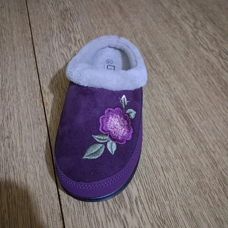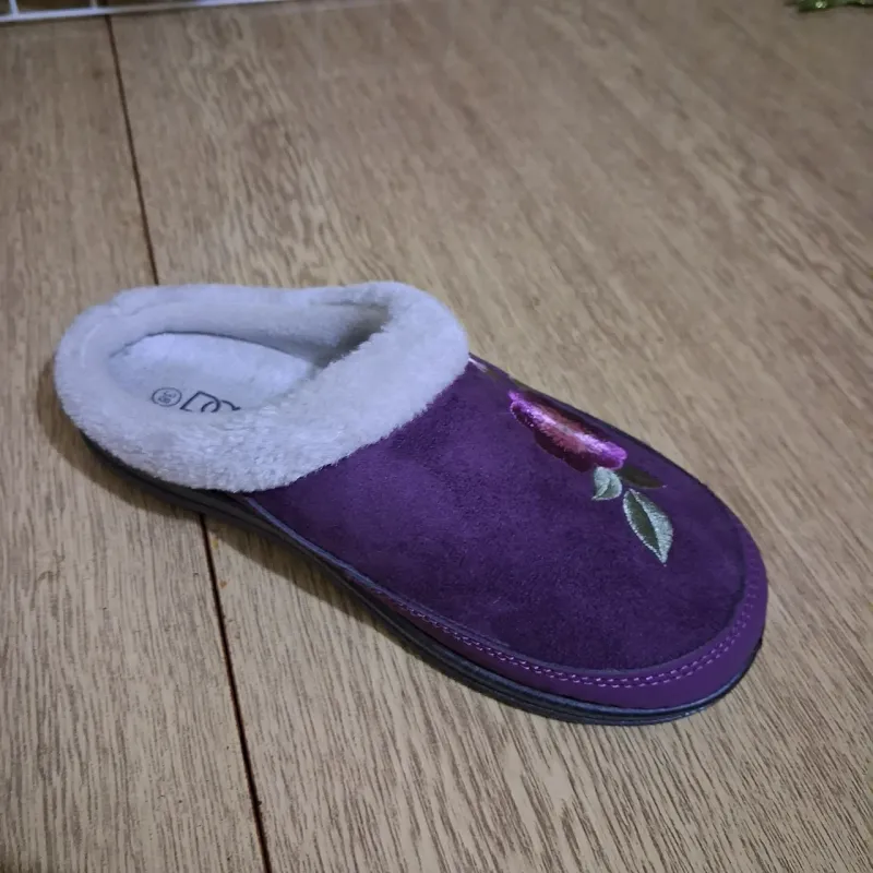 Створіть вдома атмосферу справжнього затишку з цими чудовими жіночими капцями від українського бренду Dago Style. Модель виконана у благородному фіолетовому кольорі з м'якого текстилю, що імітує замшу. Головною прикрасою є вишукана вишивка у вигляді квітки, яка додає взуттю елегантності та жіночності. Всередині тапочки утеплені густим та білосніжним штучним хутром, яке не тільки зігріває, а й приємно контрастує з темним верхом. М'яка устілка забезпечує комфорт при кожному кроці, знімаючи втому з ніг. Підошва виготовлена з міцного та гнучкого ПВХ, вона надійно прошита по контуру, що гарантує довговічність взуття. Ці капці стануть ідеальним подарунком для мами, бабусі чи подруги, підкреслюючи вашу турботу про їхній комфорт. Характеристики: Виробник: Dago Style (Україна) Сезон: Зима / Осінь / Весна Матеріал верху: Текстиль (Еко-замша) Матеріал підкладки: Біле штучне хутро Декор: Вишивка (Квітка) Підошва: Прошита, ПВХ Колір: Фіолетовий Розміри: 36-41