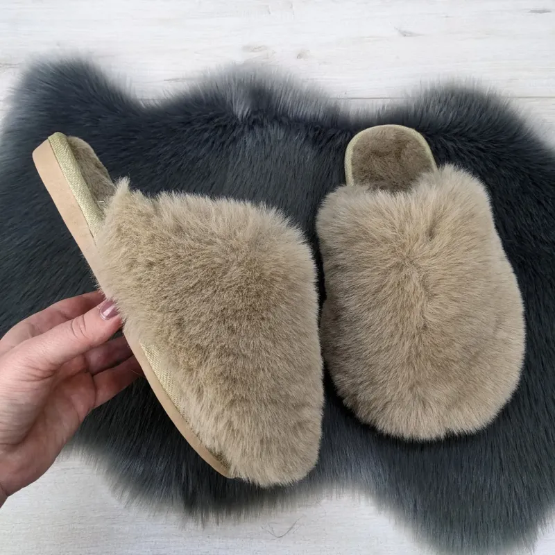 Теги: домашні капці, пухнастіки, еко-хутра, бежеві, жіночі капці, домашня обувь, капці з натуральної хутри