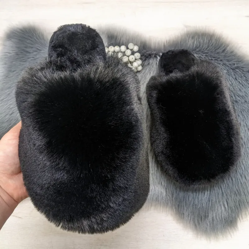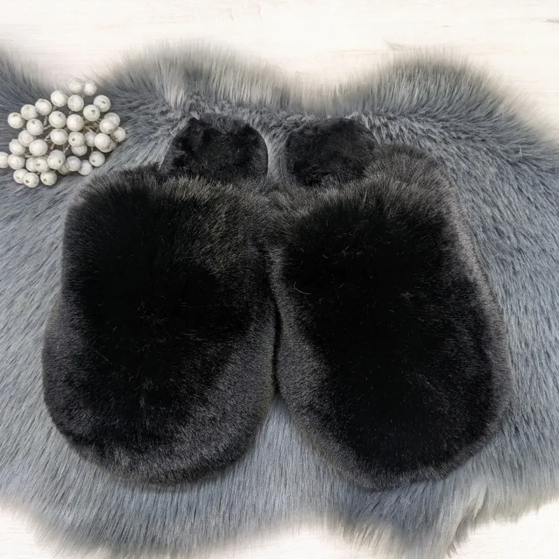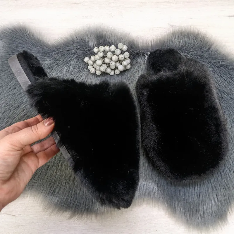Теги: жіночі капці, домашні капці, пухнасті, еко-хутра, чорний колір, теплий одяг, домашній комфорт
