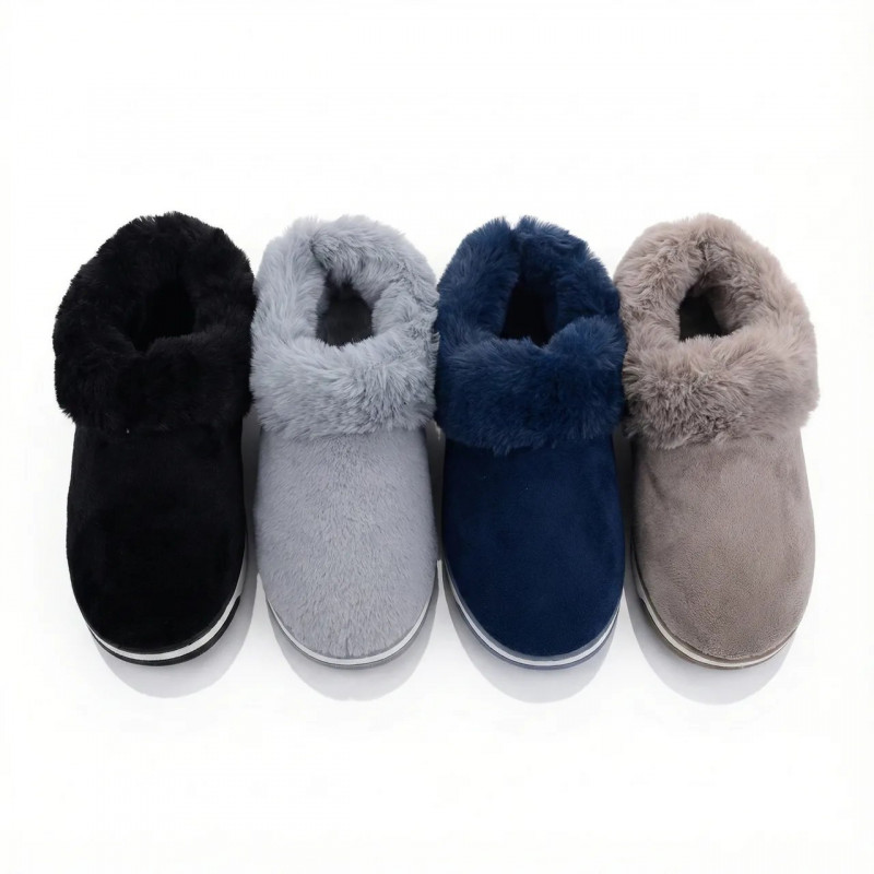 Подаруйте своїм ногам максимальний комфорт і тепло з цими затишними домашніми капцями-чунями. Модель виконана у стилі коротких угг, що робить її ідеальним варіантом для холодної пори року. Вони повністю закривають стопу, зберігаючи дорогоцінне тепло всередині. Верх виготовлений з м'якого матеріалу, що нагадує замшу (еко-замша/текстиль), який приємний на дотик і виглядає дуже стильно. Головна особливість — густий та пухнастий хутряний відворот, який не лише прикрашає взуття, а й додатково зігріває щиколотку. Всередині тапочки також утеплені м'яким хутром. Підошва міцна, але гнучка, забезпечує гарну амортизацію та ізоляцію від холодної підлоги. Ці капці стануть чудовим подарунком для близьких, адже вони поєднують у собі практичність, тепло та домашній затишок. Характеристики: Тип взуття: Капці-чуні / Домашні уггі / Закриті тапочки Сезон: Зима / Осінь Матеріал верху: Текстиль під замшу (велюр) Матеріал підкладки: Штучне хутро (густе та тепле) Підошва: ПВХ / Гума (гнучка, прошита/клеєна) Кольори: Чорний, Сірий, Синій, Бежевий Розміри: 37-42 Країна виробник: Китай