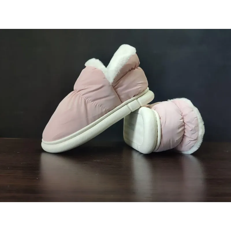 Теплі та комфортні жіночі домашні уггі-дутики рожеві кольору, виготовлені з плащівки та хутряної підкладки. Ці капці-чобітки ідеально підходять для домашнього використання та забезпечують тепло та зручність您的 ніг.