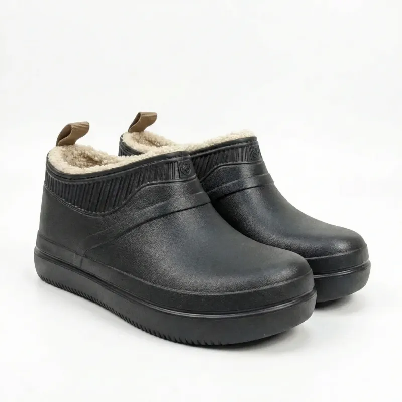 Чорні зимові сабо, утеплені гумові черевики 41, жіночі галоші піна на хутрі Dago Style (37-41) - ідеальний вибір для жінок, які цінують стиль і комфорт. Ці галоші виготовлені з високоякісних матеріалів і мають товсту підошву, яка забезпечує міцність і стійкість на слизькій поверхні.